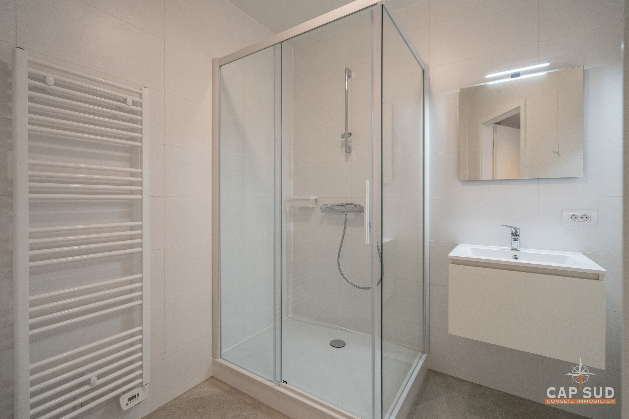 Le hall de nuit dessert deux chambres (18 et 10 m²), dont une suite parentale avec salle de bains attenante, une salle de douche (douche + WC) et un local buanderie.