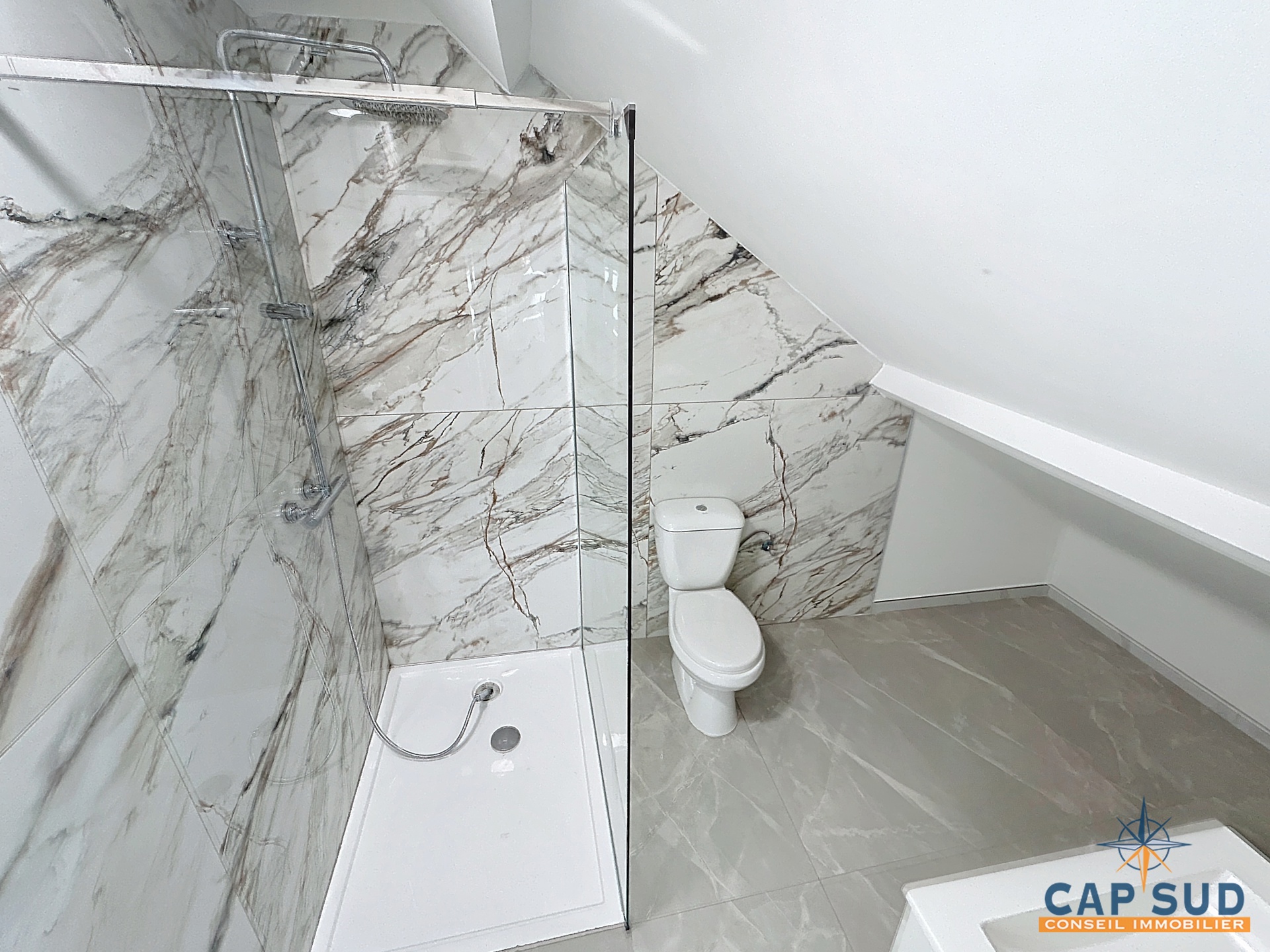 Le grenier a été aménagé en grande chambre avec une deuxième salle de bain et un WC.