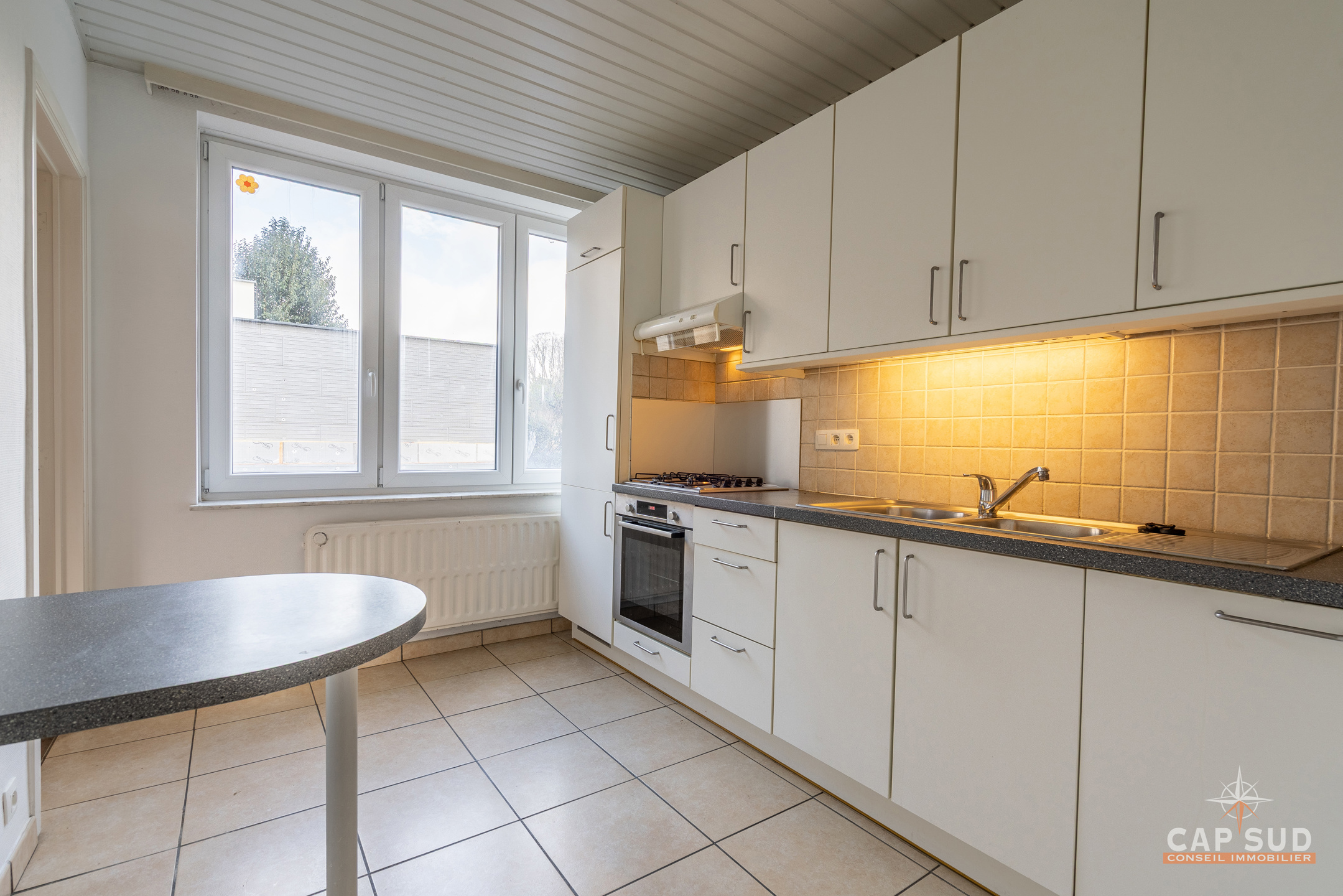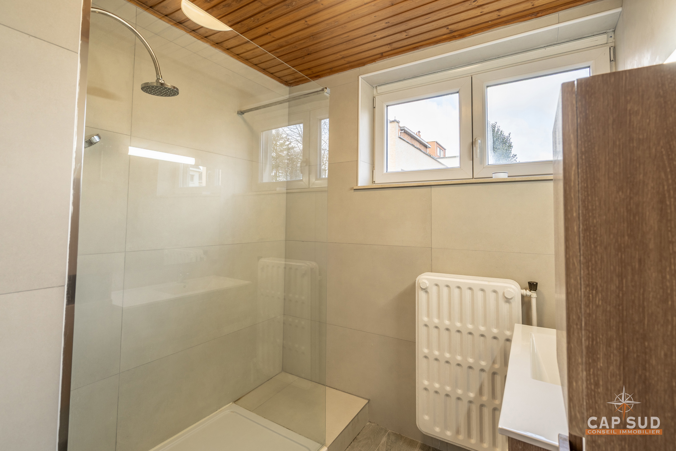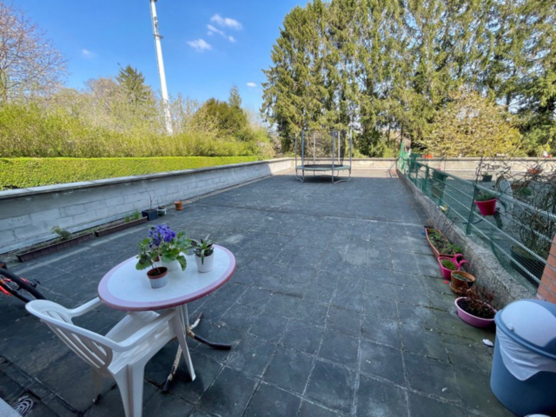 Waterloo, En plein centre, à proximité de toutes facilités, dans un quartier calme et arboré, CAP SUD vous propose ce bel appartement (rez-de-chaussée) de 95m2 disposant d’une terrasse de 100m2, d’une cave et d’un parking intérieur. Au rez, vous trouverez un hall d’entrée donnant sur un lumineux living de 30m2 (parquet au sol), une cuisine équipée de 10m2, une buanderie, un hall de nuit avec un local WC, une nouvelle salle de douche (comprenant une douche XXL et grand lavabo), 2 chambres de 12 et 13m2 dont une donnant sur un immense terrasse de 100m2 orientée Nord-Est. Volets automatiques, chaudière VIESSMANN de 2015, châssis en PVC DV, PEB D (limite C) : 268 kWh/m2.an, électricité CONFORME. Charges : 125€/mois pour les communs, l’eau froide et le syndic.
