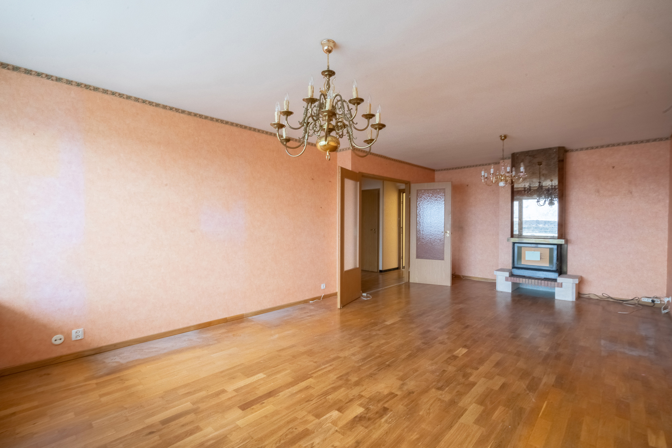 L’appartement dispose d’un spacieux living de ± 26,5m² en parquet donnant accès à une grande terrasse de ± 16m² orientée Ouest. Il se compose de trois chambres en vinyle (±14,5m², ±9,8 m² et ± 9m²), dont la plus grande a un accès à la terrasse, d’une cuisine de 8,5m² (carrelée et équipée d’un four, hotte, double évier et lave-vaisselle), d’une salle de bain de ± 4,2m² avec WC, d’un hall d’entrée avec vestiaire, d’un hall de nuit et d’un WC séparé.