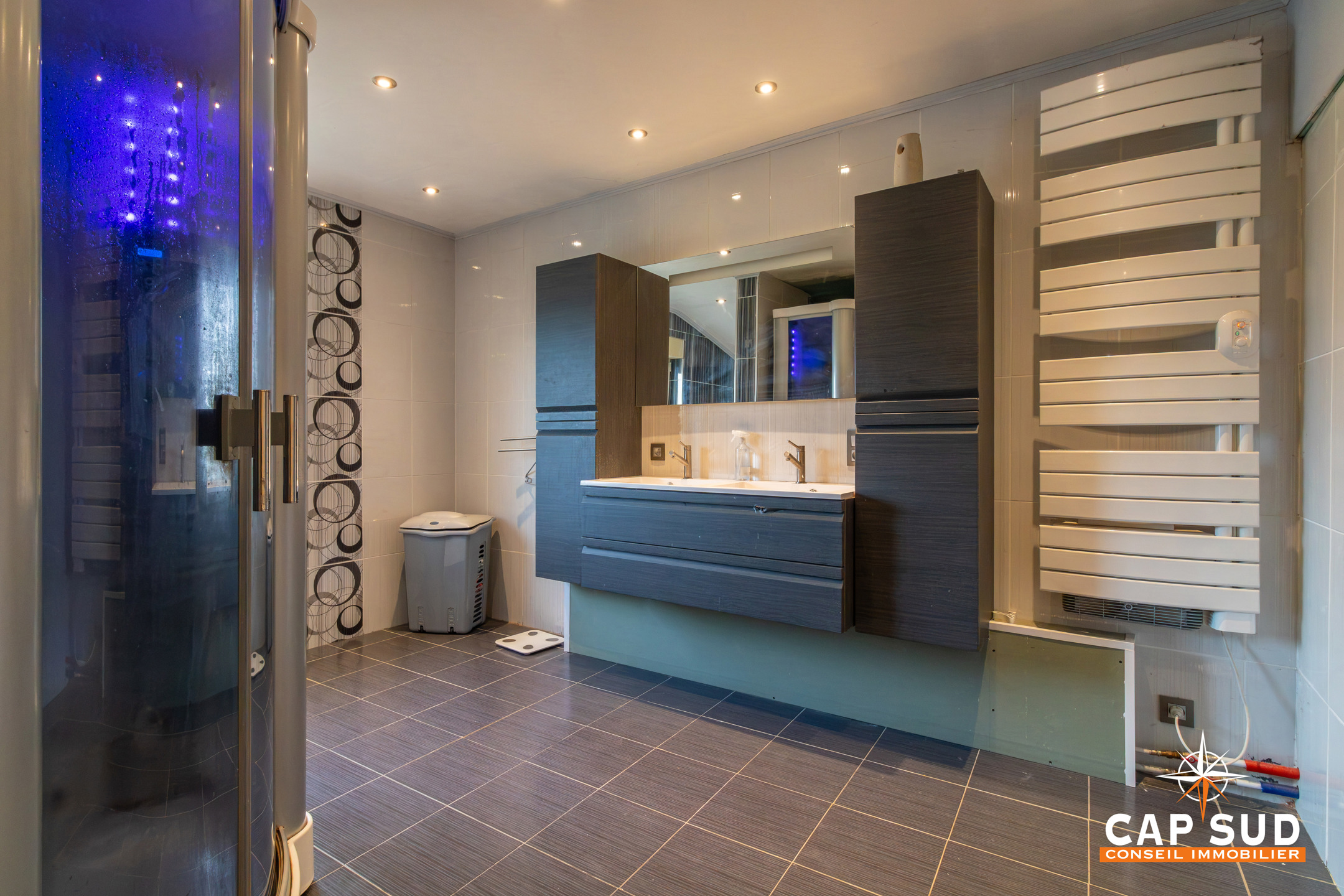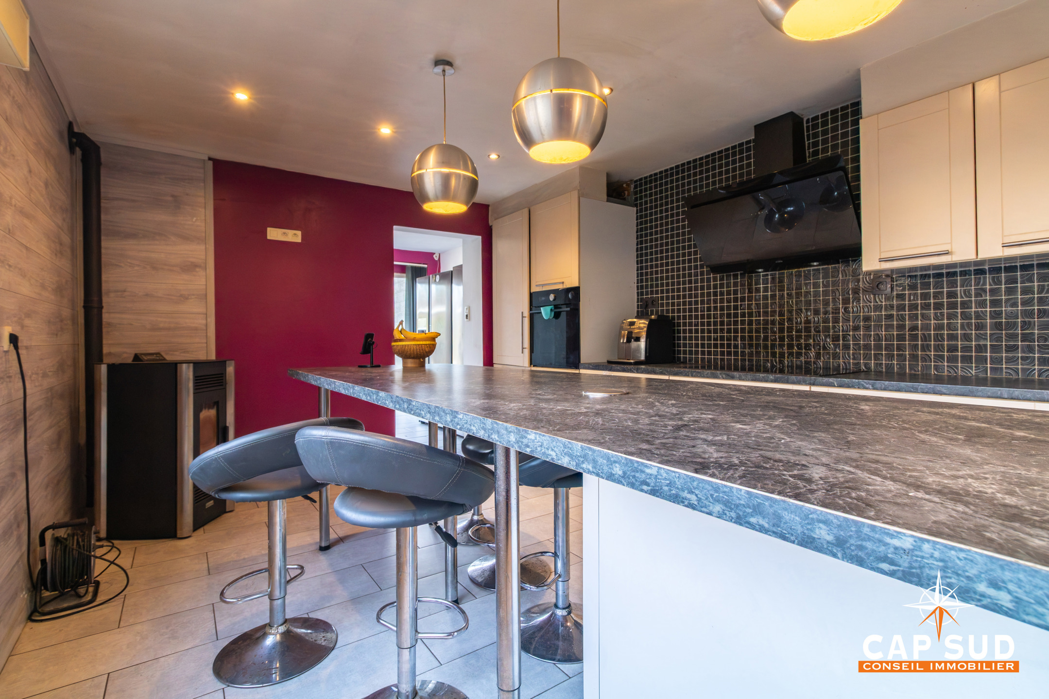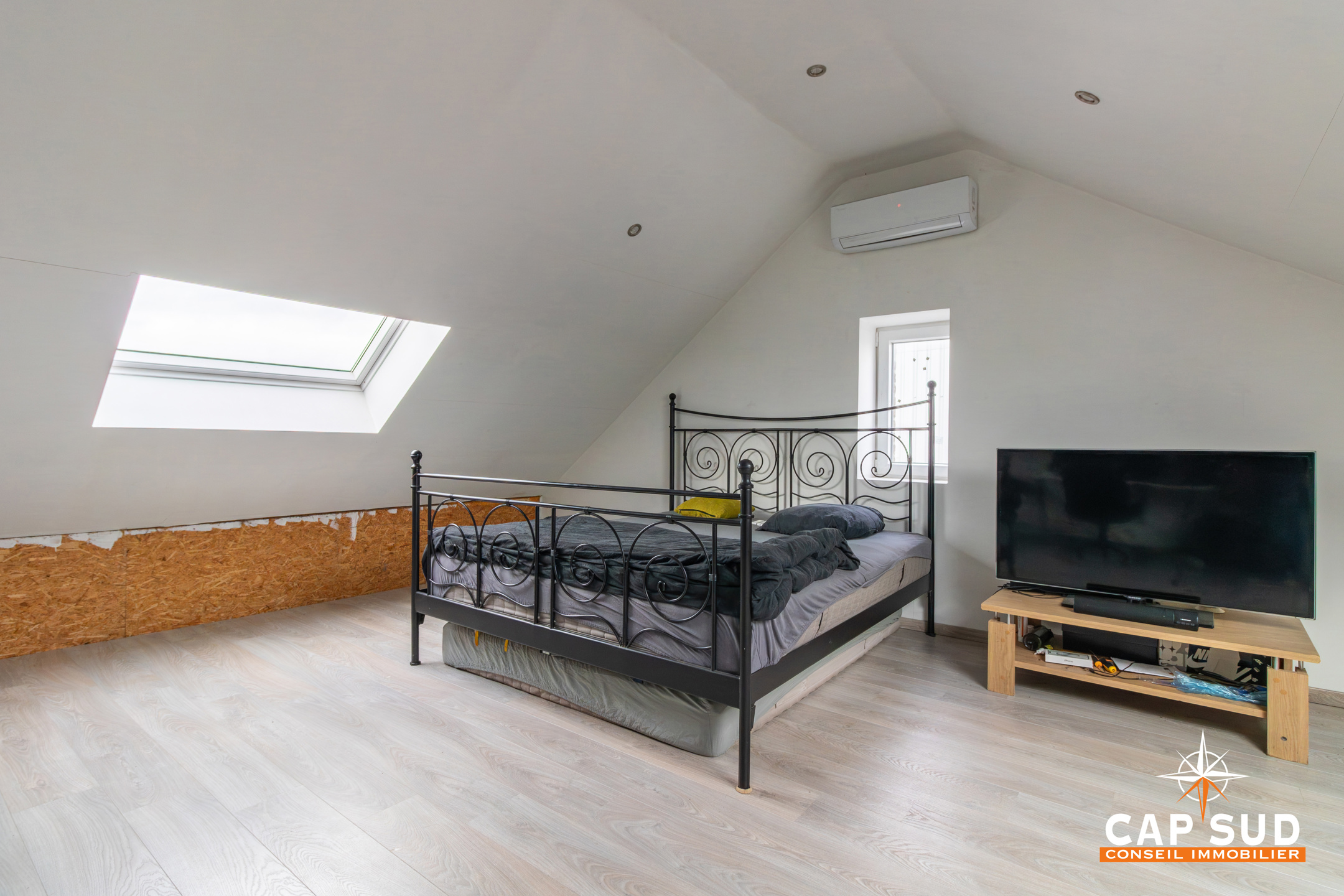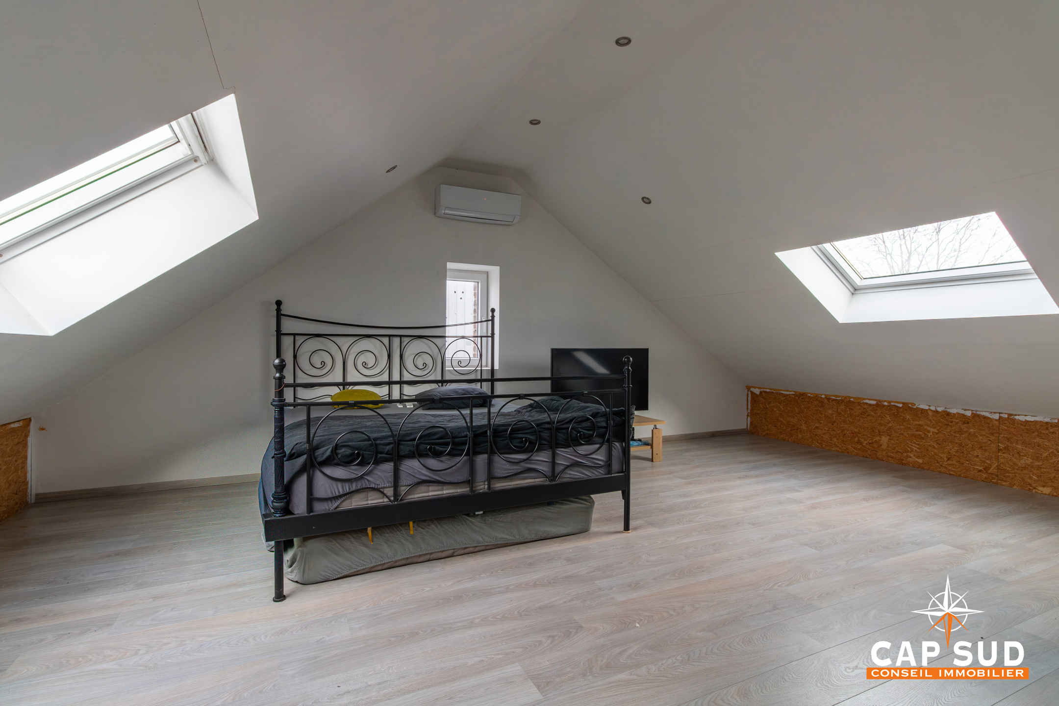 La maison dispose de deux poêles à pellets et de châssis double vitrage avec volets électriques. Les combles bénéficient d’un système d’air conditionné chaud/froid.