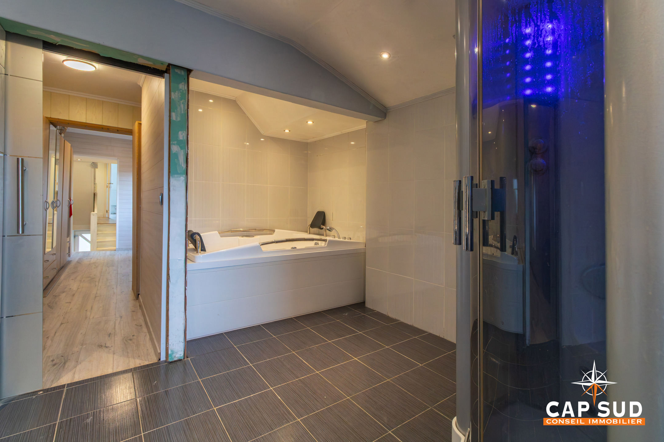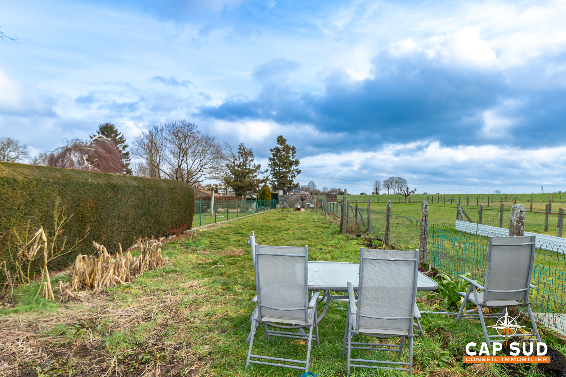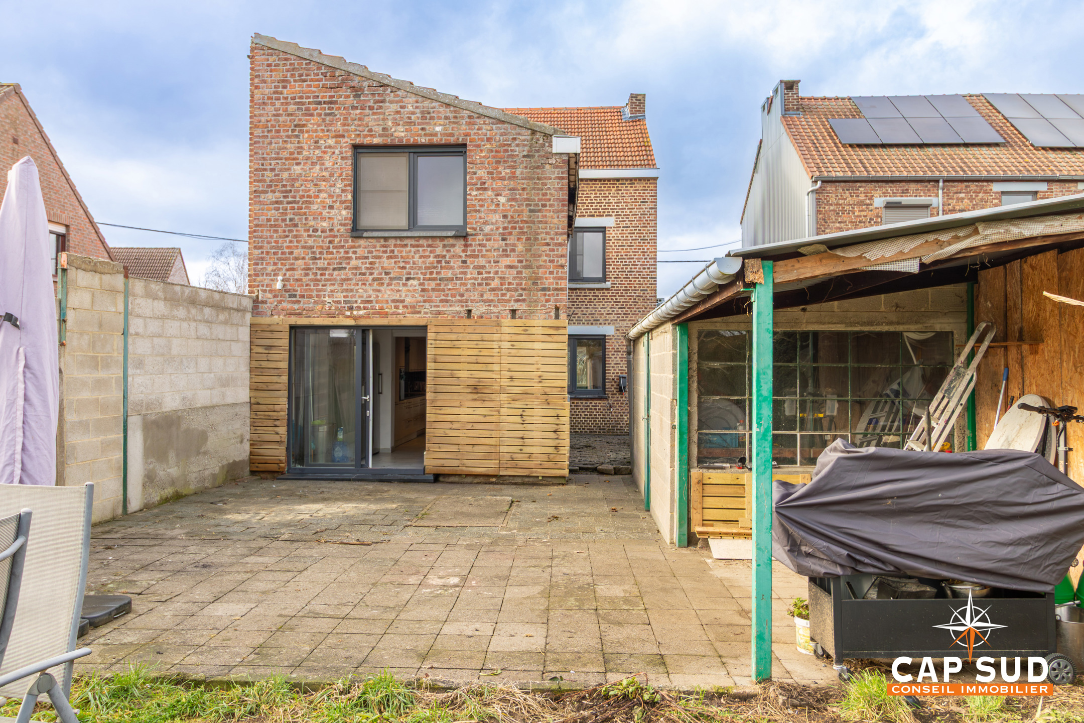 À l’arrière, une terrasse et un jardin en profondeur complètent agréablement l’ensemble. Des finitions intérieures et extérieures restent à parfaire, offrant la possibilité d’adapter les lieux à vos envies.