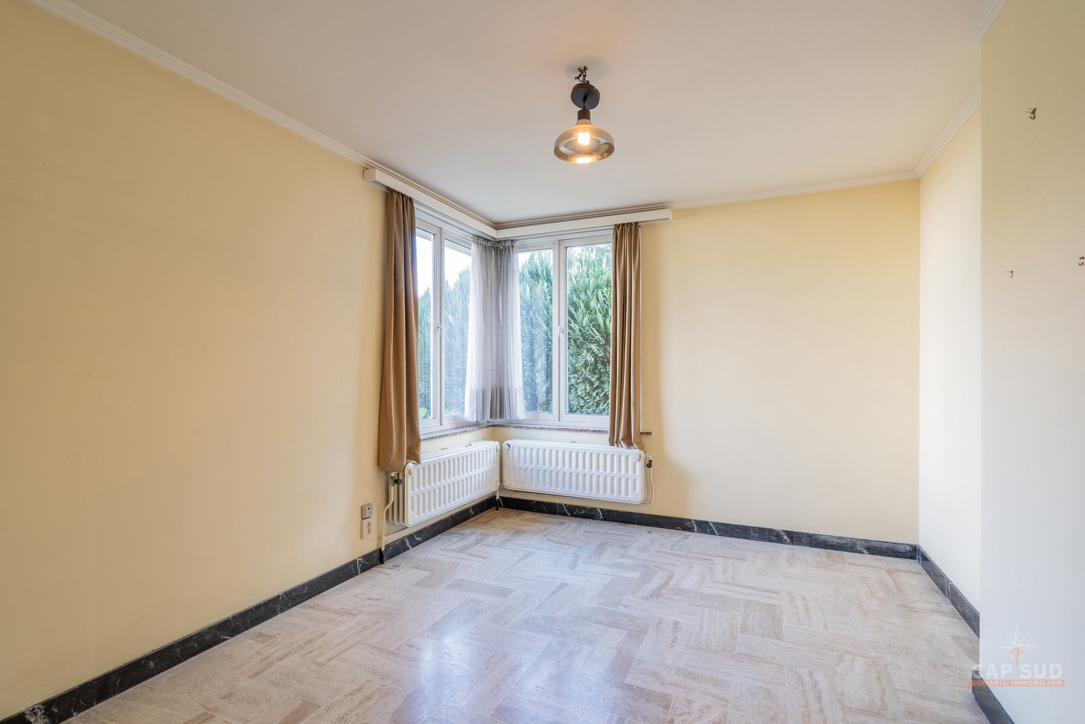 Waterloo – Quartier VERSAILLES – Idéalement située à proximité de toutes facilités (transports, écoles, commerces), CAP SUD vous propose cette grande villa familiale A RENOVER de 420m2 (dont 220m2 habitables actuellement) sise sur un terrain de 6,61ares orienté Ouest. Vous trouverez au rez-de-chaussée, un vaste hall d’entrée avec toutes ses commodités, un lumineux living de 47m2 avec feu ouvert (K7), un bureau (ou chambre) de 14m2, une cuisine équipée de 12m2 donnant sur le jardin, une arrière cuisine ainsi qu’une buanderie. Au 1er étage, le hall de nuit dessert 3 belles chambres de 23, 20 et 16m2, une salle de bains de 12m2 et un grenier (possibilité chambre) de 15m2. Au 2ème étage, il y a un grand grenier aménageable de 50m2 sous pentes. Toute la villa est sous caves et garage (2 voitures) pour une superficie totale de 130m2. Terrasse arrière de 50m2 donnant sur le jardin sans vis-à-vis. NOUVELLE toiture (et isolation) de 2015, châssis en PVC de 2011, NOUVELLE chaudière Vaillant de 2020, PEB C : 234kWh/an.m2, système d’alarme, volets automatiques, adoucisseur, parking extérieur… Vous recherchez de grands espaces? Venez la découvrir rapidement !