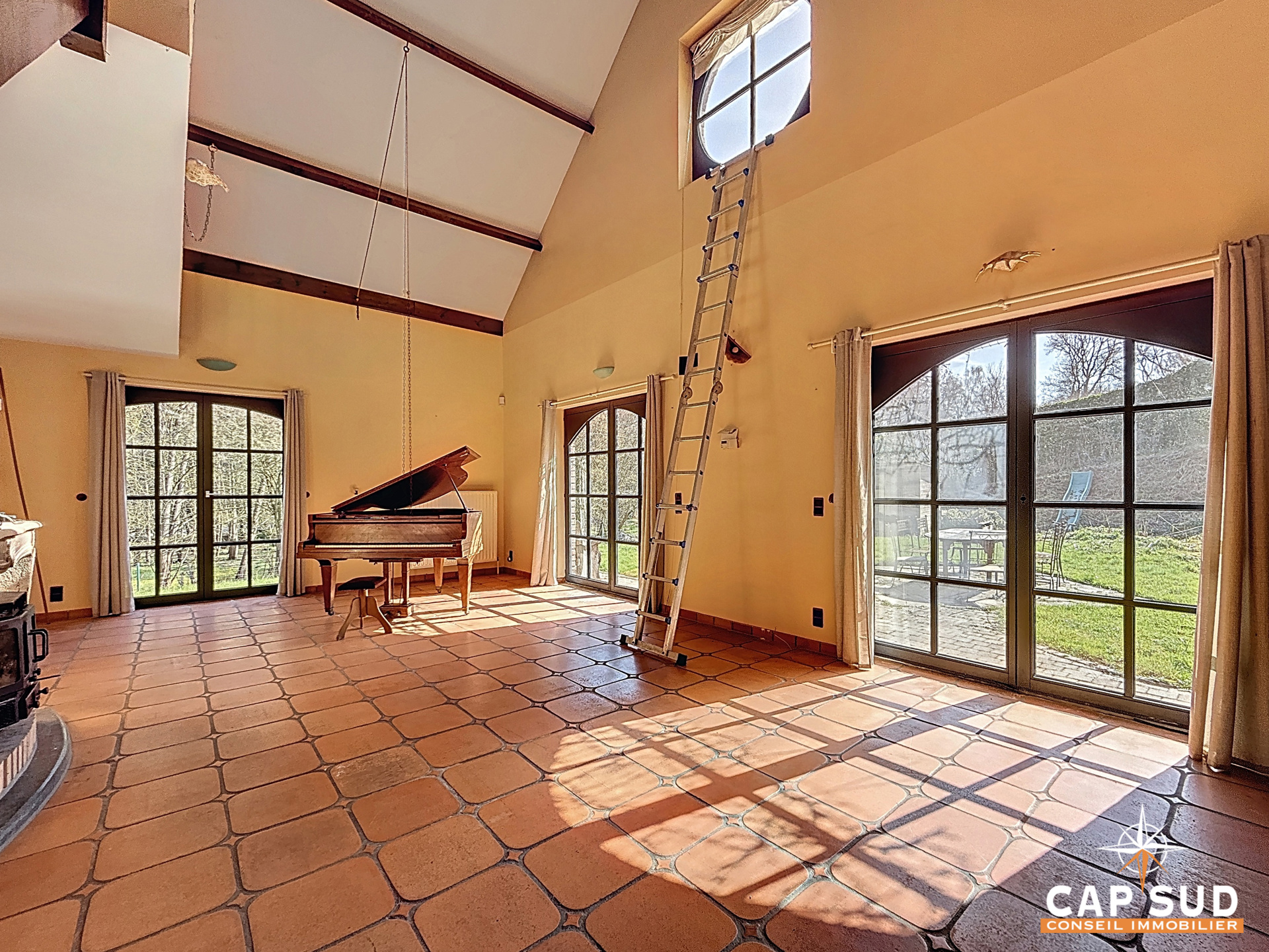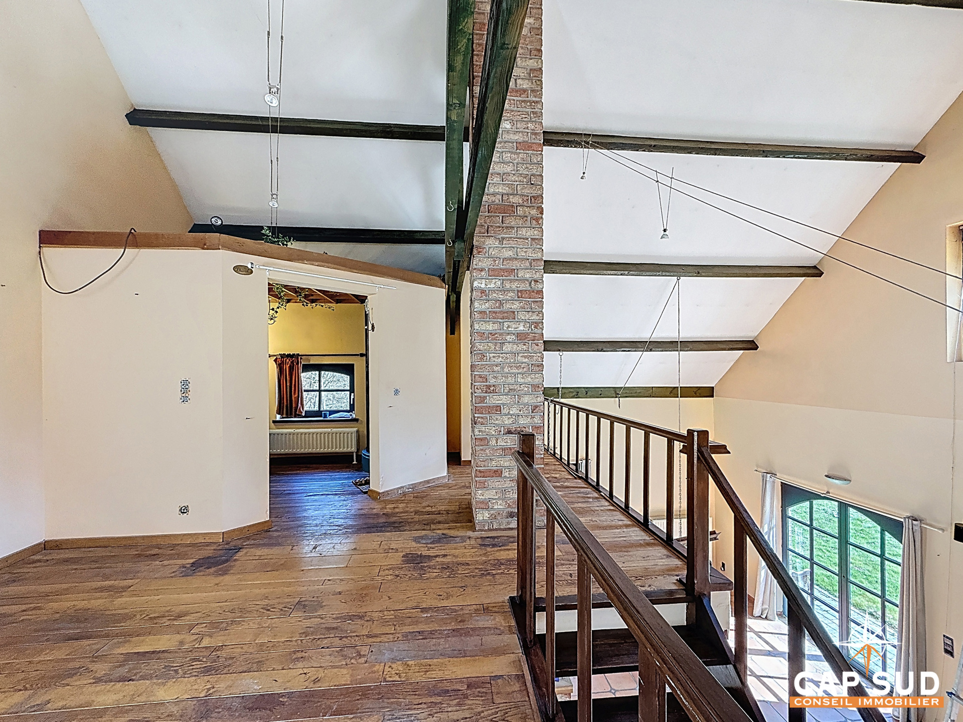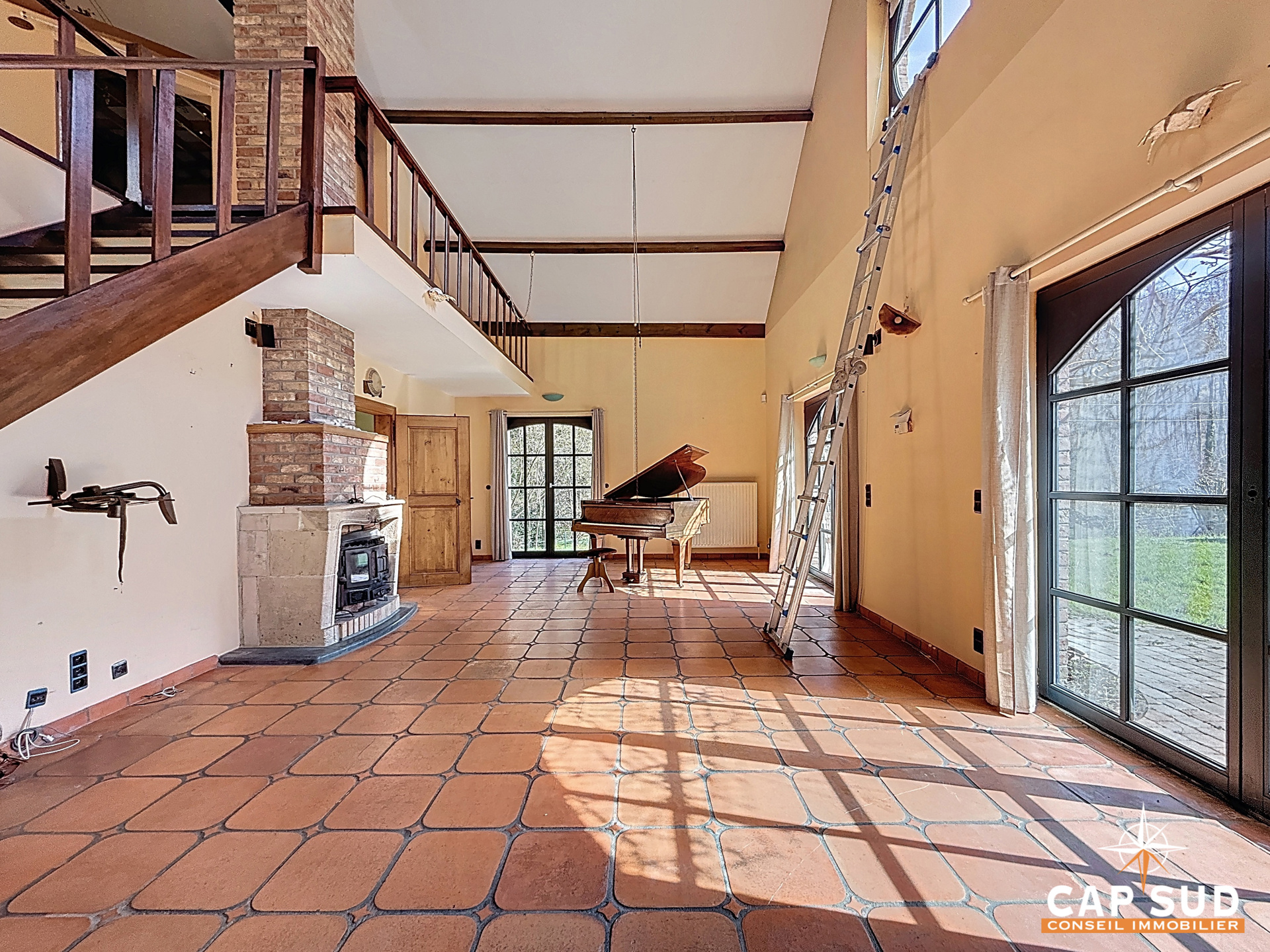 Dès l’entrée, vous serez séduit par les volumes et la luminosité qu’offre le séjour avec salle à manger, sublimé par une mezzanine apportant caractère et ouverture. Un poêle à bois vient parfaire l’ambiance chaleureuse de cet espace de vie.