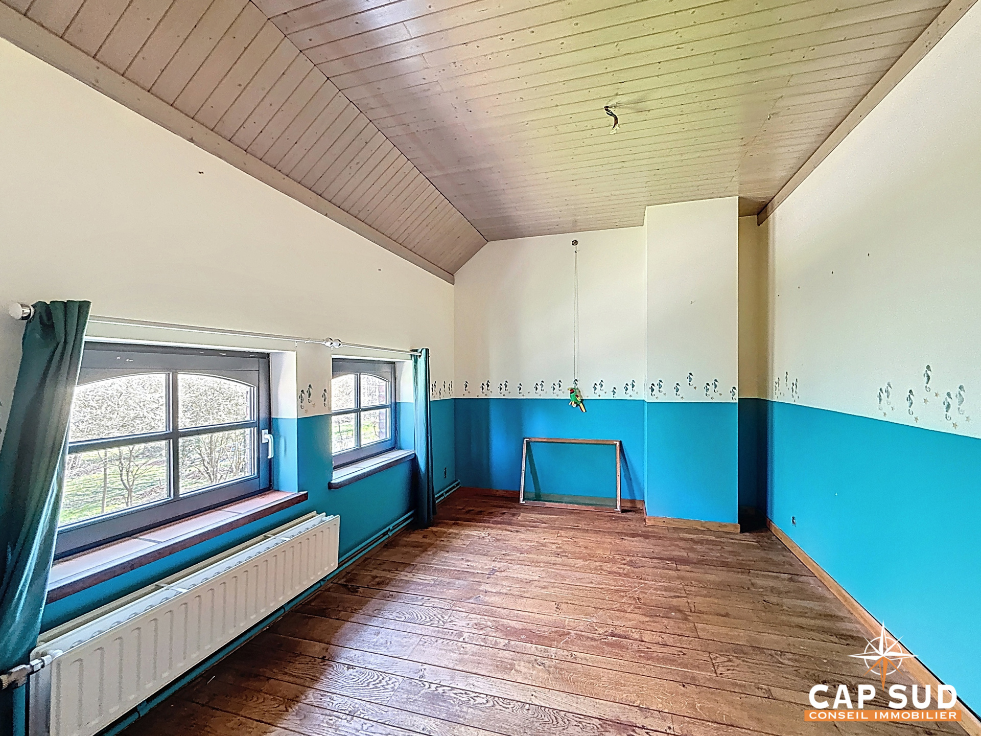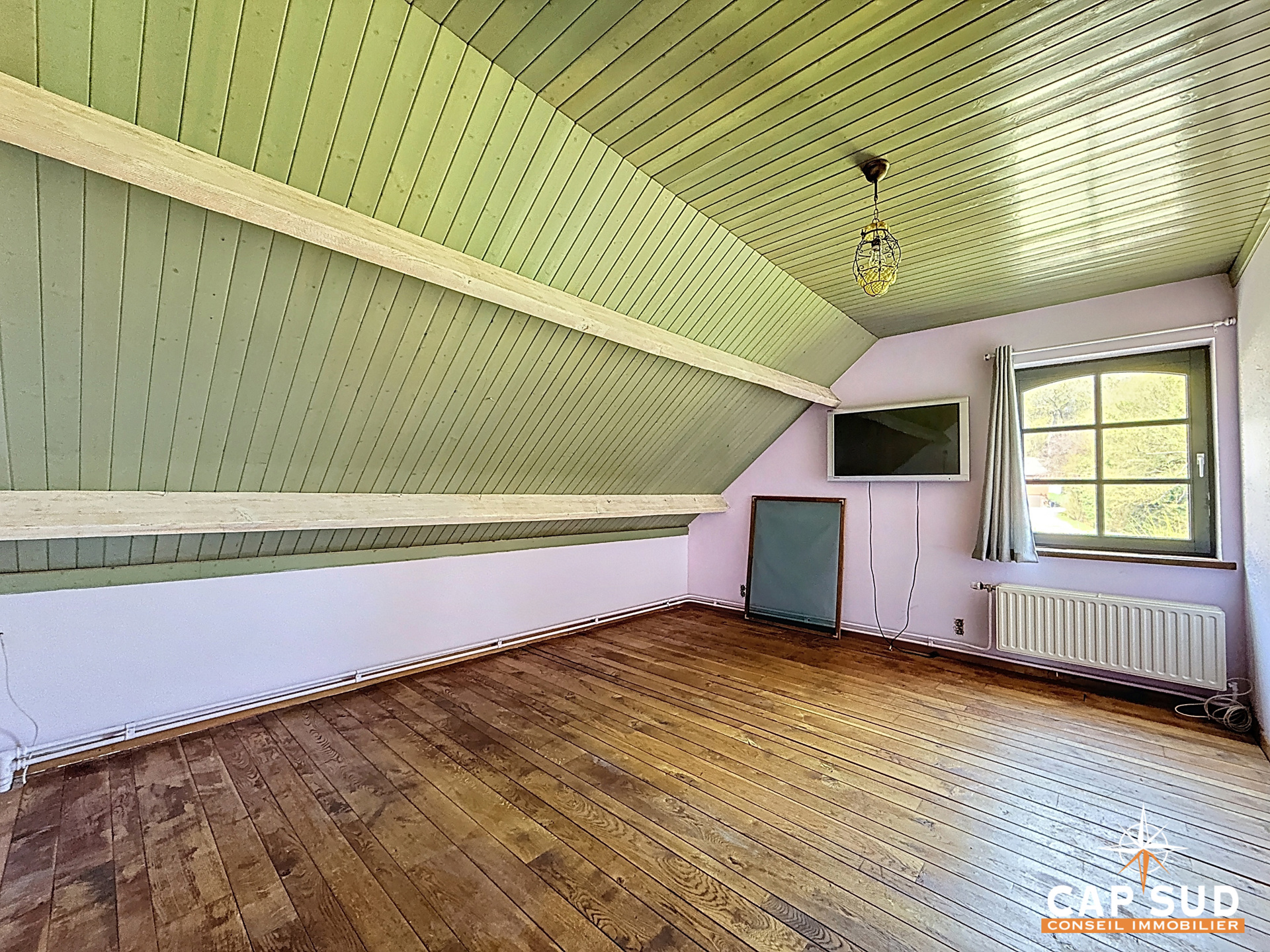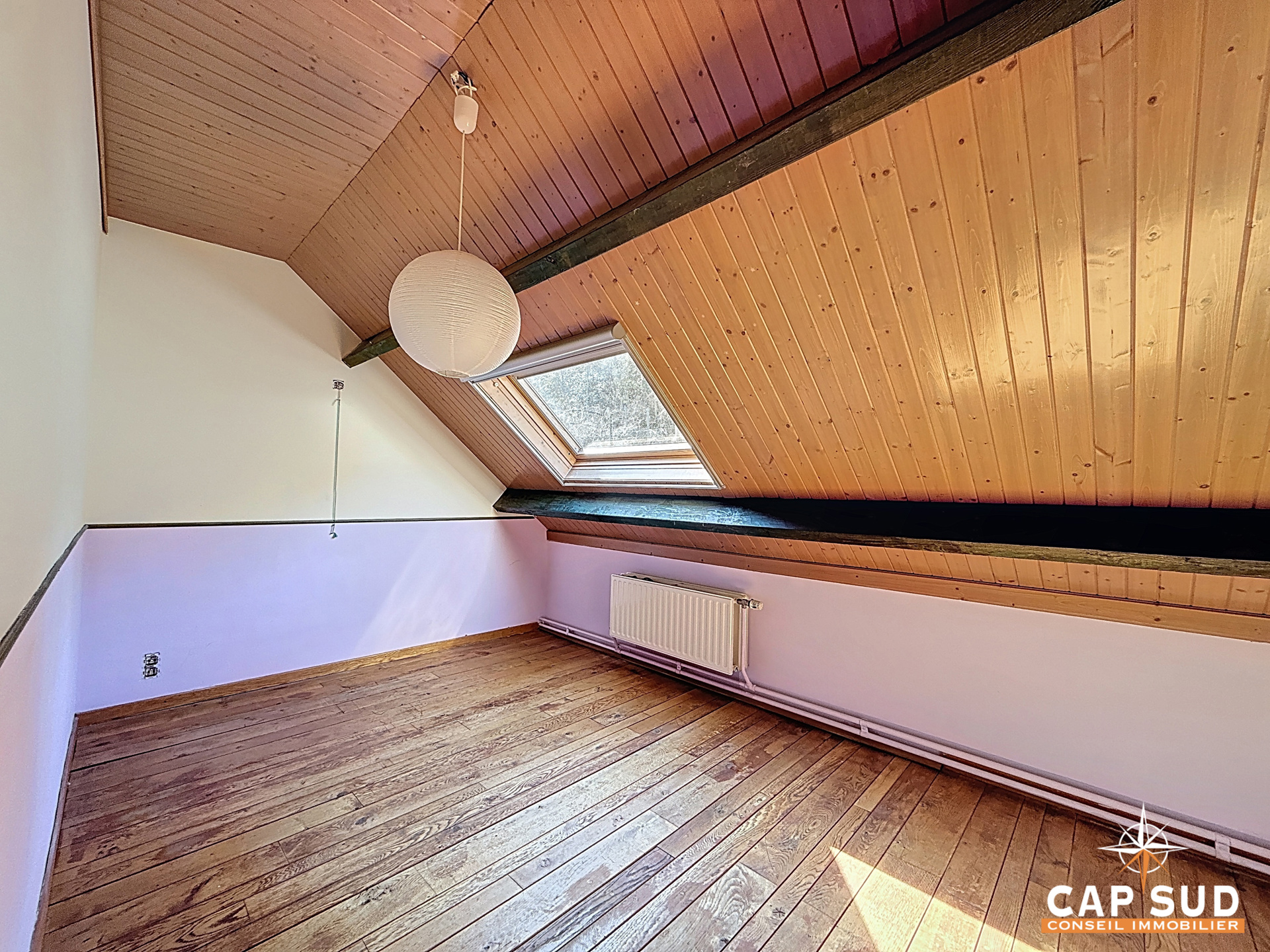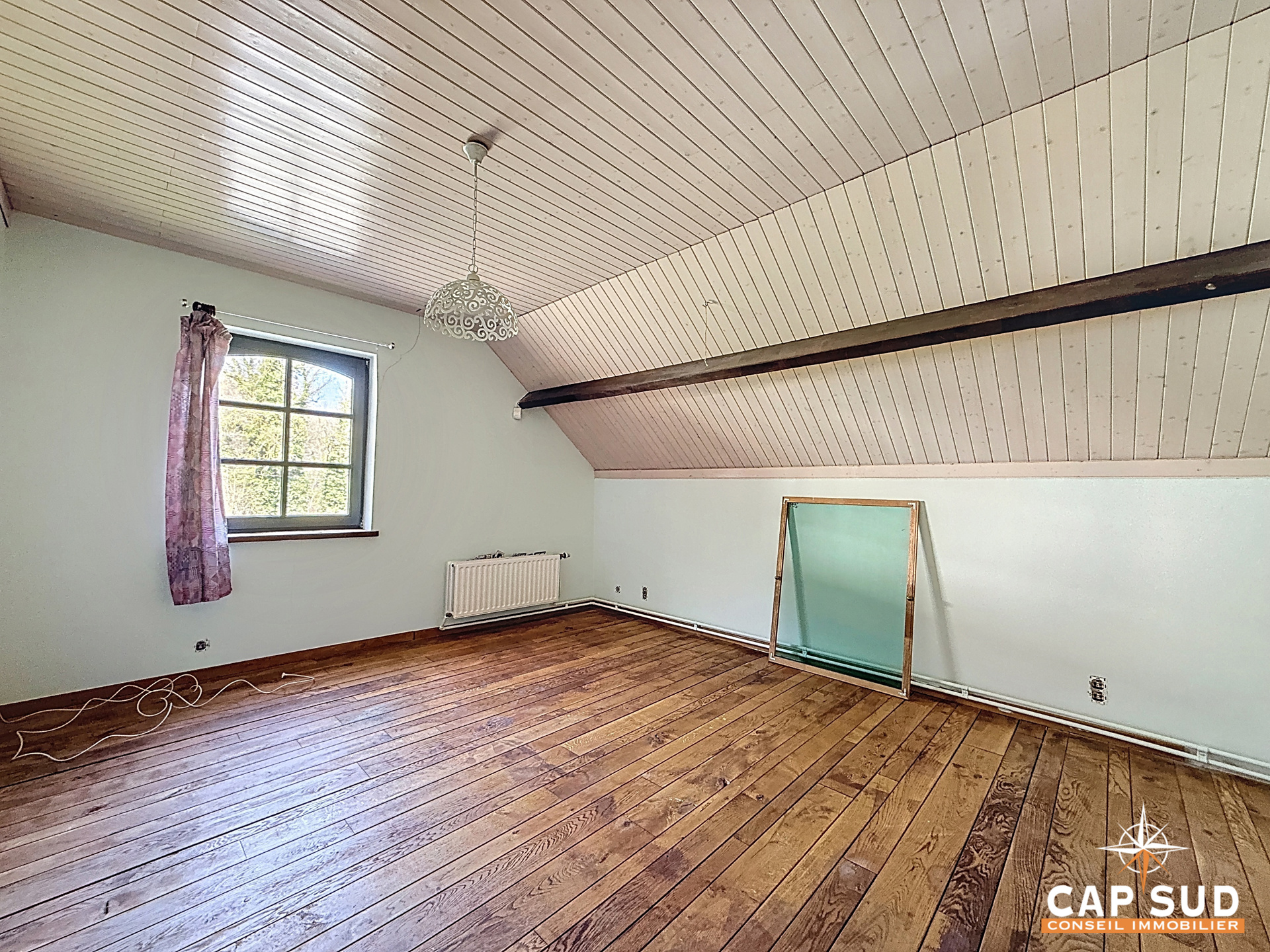La maison propose quatre belles chambres, idéales pour une famille, ainsi qu’un spacieux hall de nuit et une salle de douche à l’étage. Un grenier accessible par trappe complète les espaces de rangement.