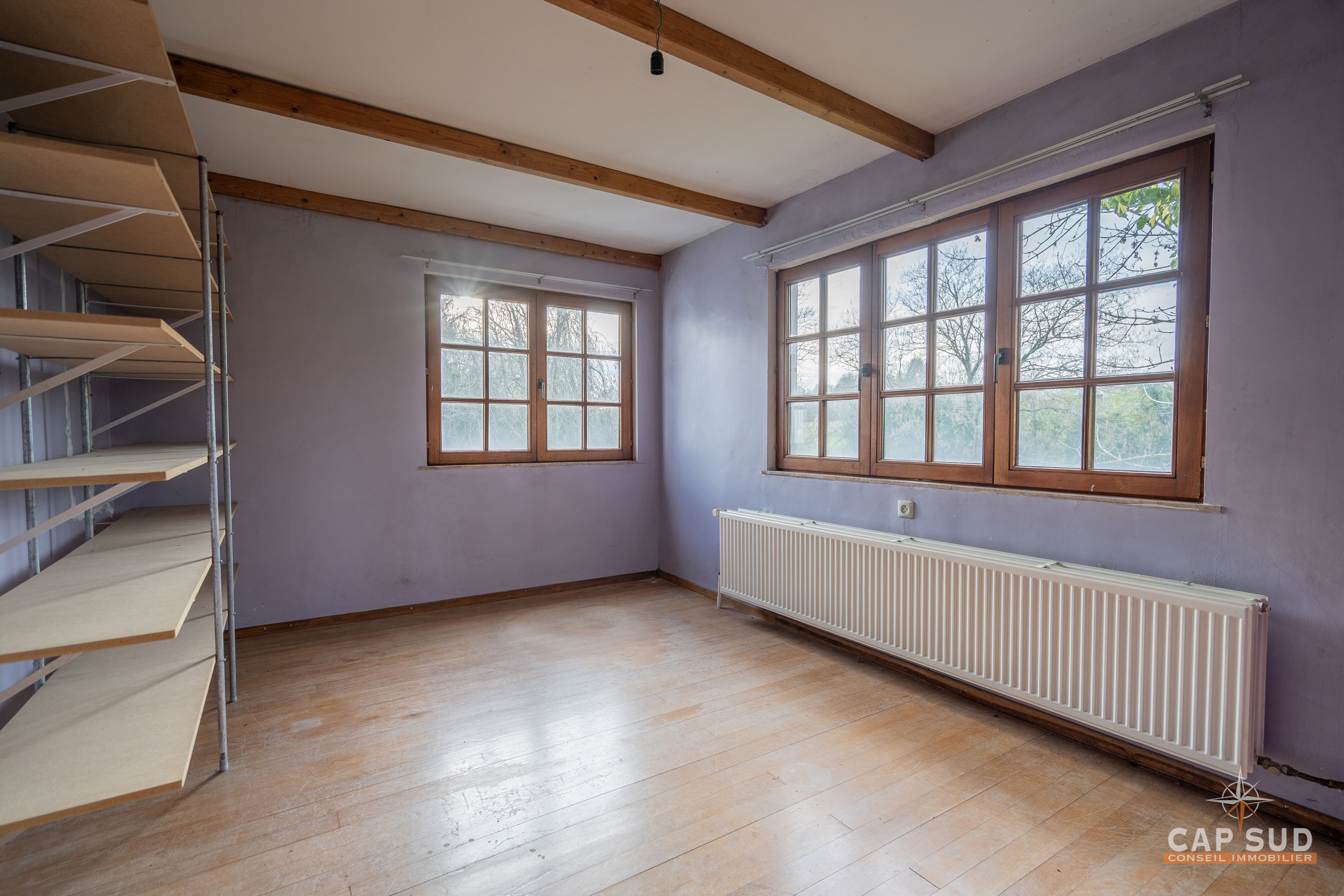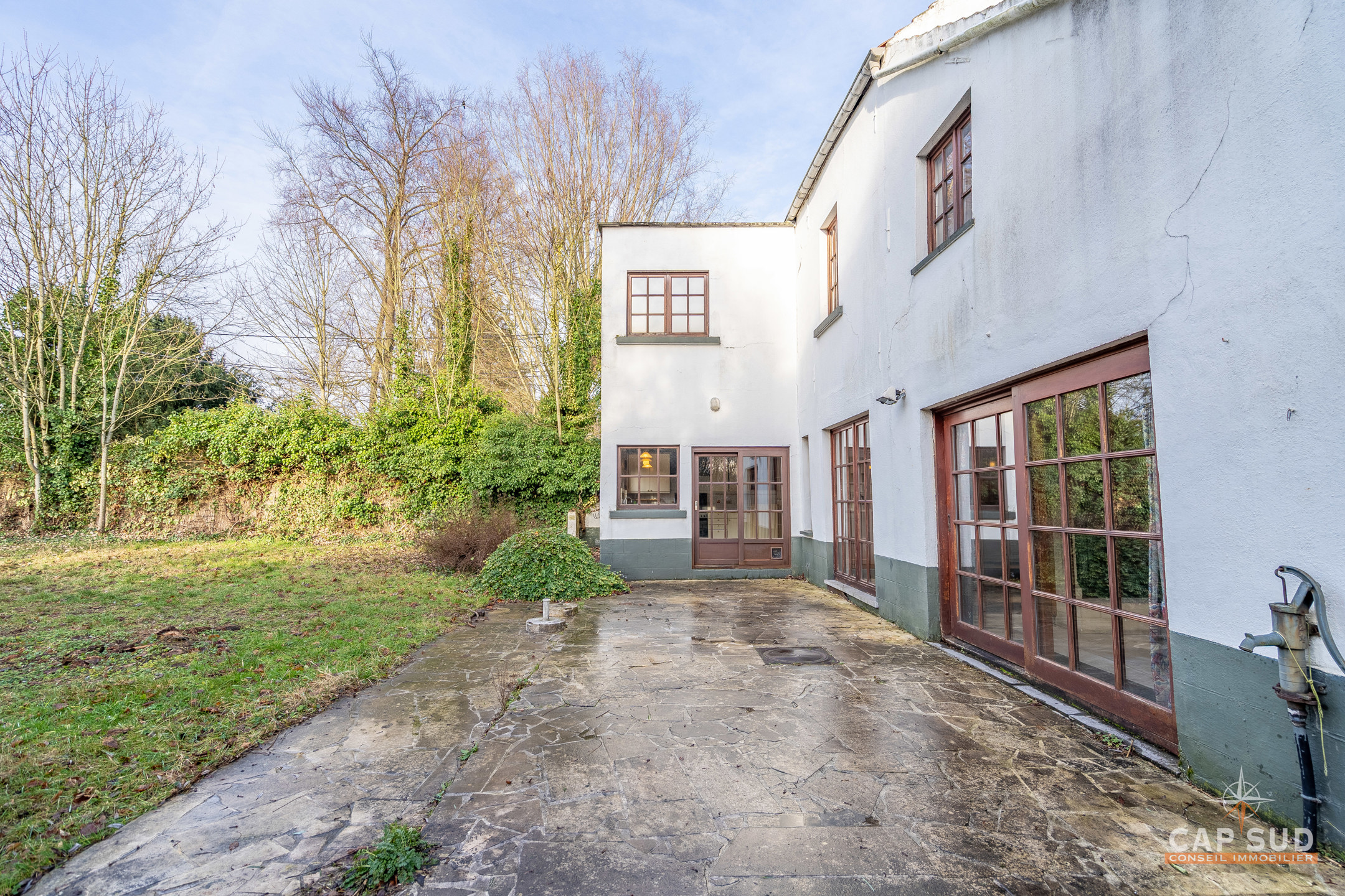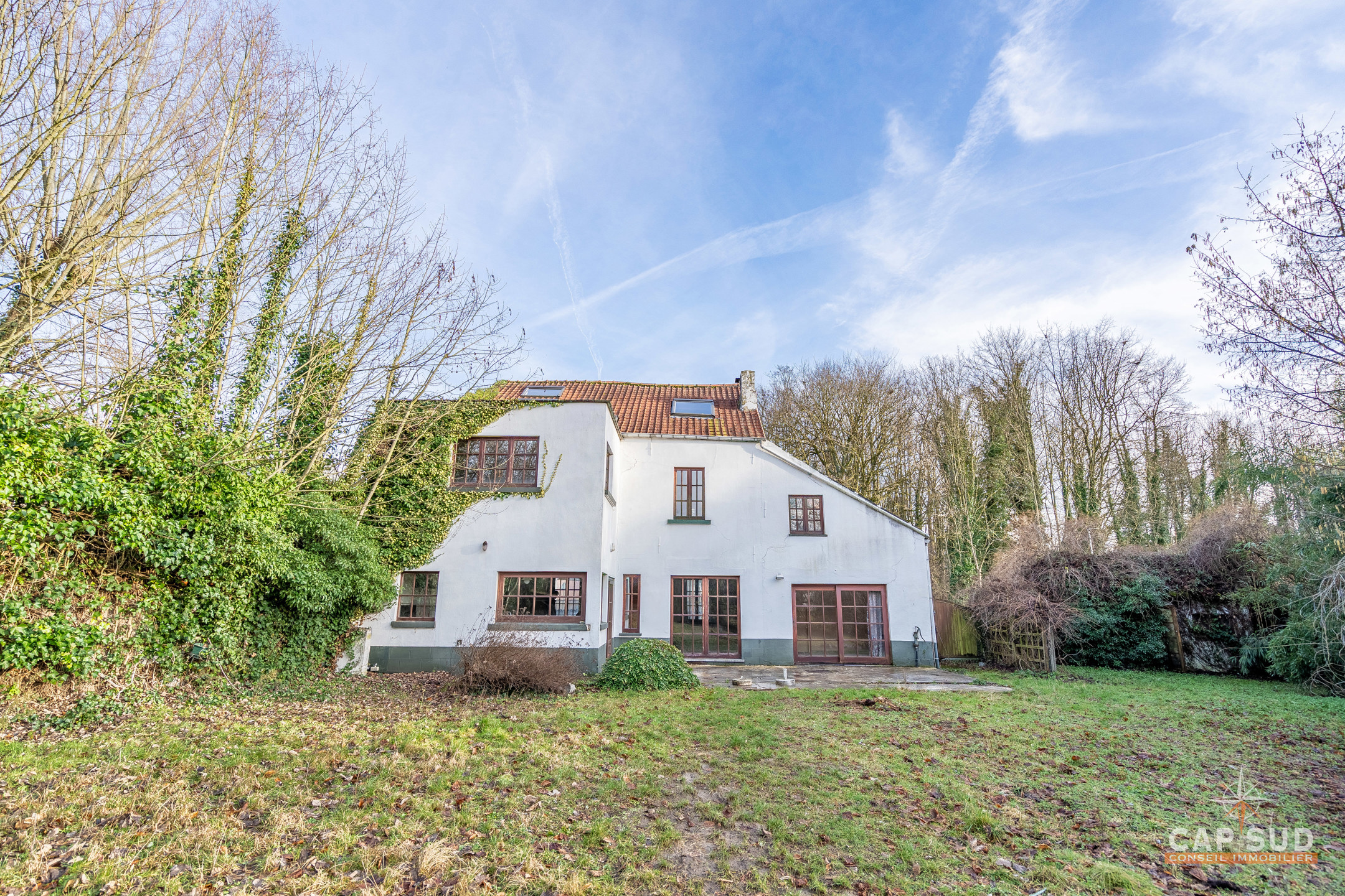 Waterloo – Dans le quartier du Chenois, à proximité de toutes facilités, CAP SUD vous présente cette jolie villa type fermette A RENOVER de 230m2 sise sur 11,54ares orienté Ouest. Au rez, vous trouverez un hall d’entrée avec vestiaire et local WC, un vaste espace de vie de 87m2 très lumineux avec FO donnant sur une terrasse de 35m2. Au 1er, le hall de nuit serpente sur 25m2 et dessert 3 chambres (de 12, 15 et 20m2) et 2 salles de bains (de 6 et 20m2). Au 2ème, il y une quatrième chambre de 15m2 et un grenier (aménageable en chambre) de 13m2. Petite cave en sous-sol. Grande terrasse de 35m2 donnant sur un splendide terrain complètement arboré et privatisé. Le bien est situé dans un aléa d’inondation faible (Site géoportail de Wallonie). PEB D : 262kWh/m2.an, 17 panneaux solaires, chaudière Viessmann. PRIX: 495.000€ sauf offre supérieure…A découvrir rapidement…