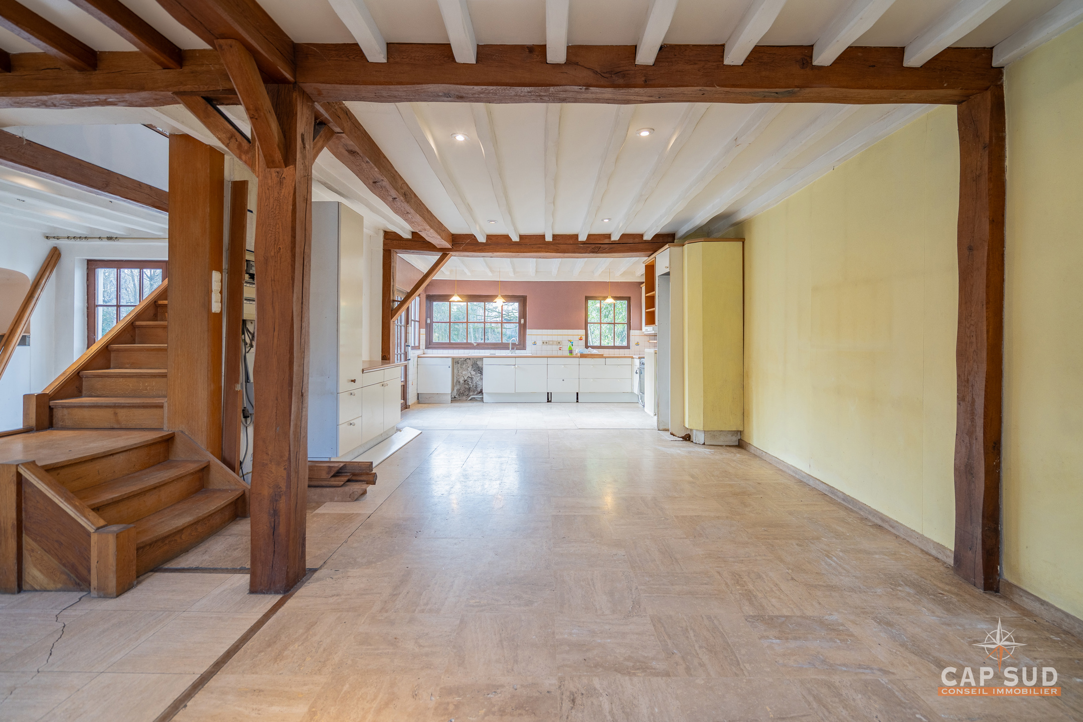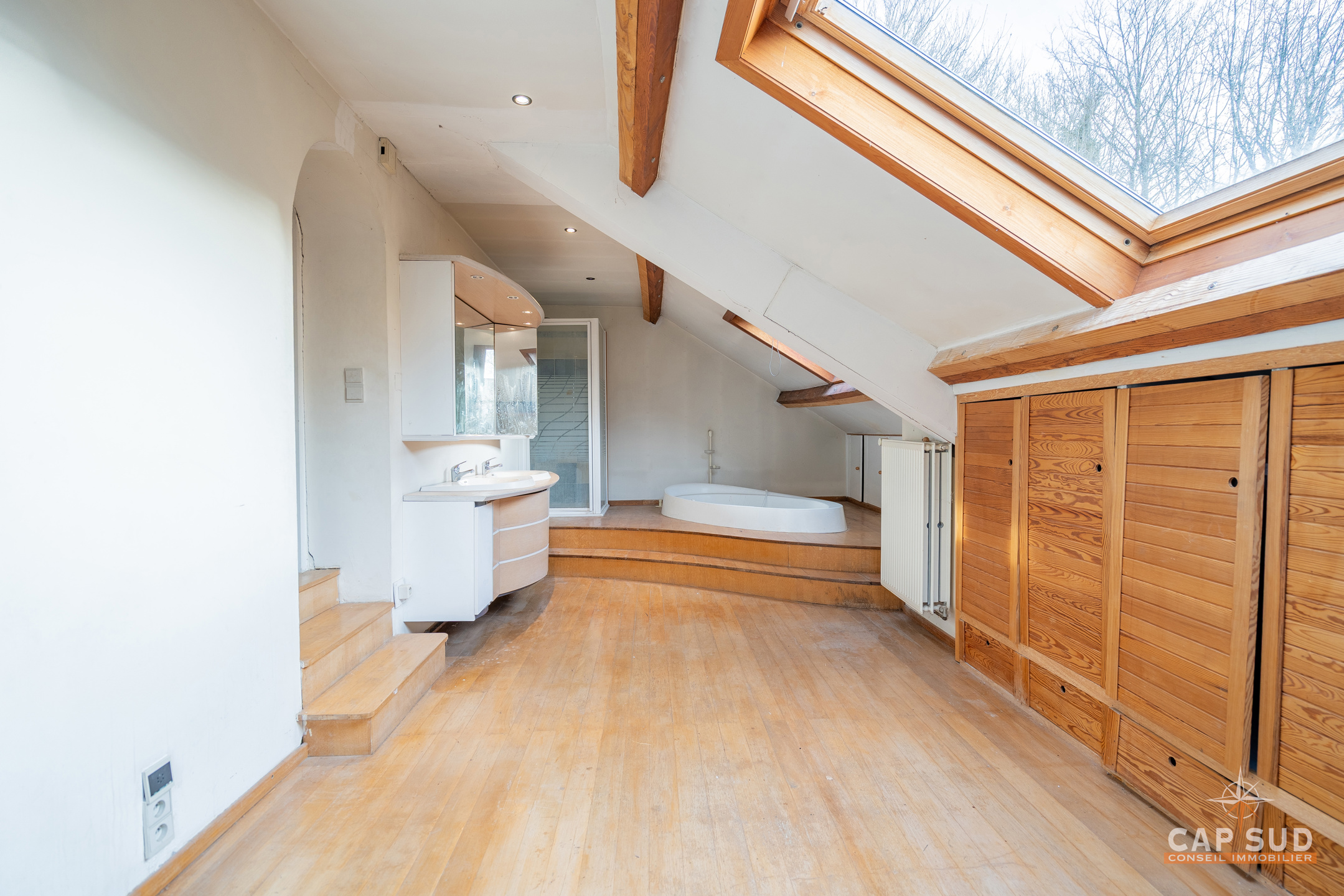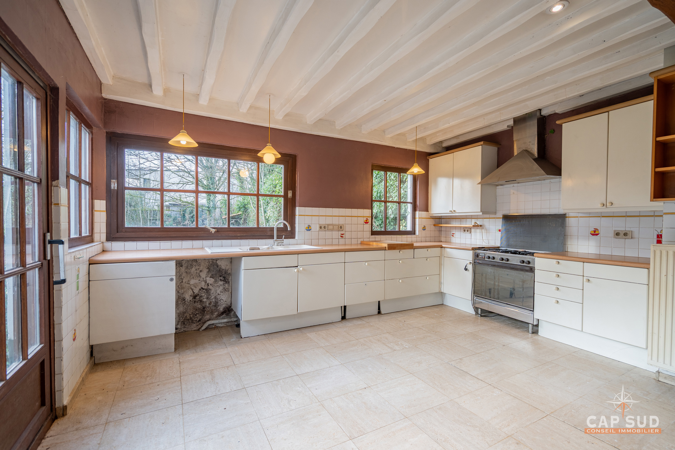 Waterloo – Dans le quartier du Chenois, à proximité de toutes facilités, CAP SUD vous présente cette jolie villa type fermette A RENOVER de 230m2 sise sur 11,54ares orienté Ouest. Au rez, vous trouverez un hall d’entrée avec vestiaire et local WC, un vaste espace de vie de 87m2 très lumineux avec FO donnant sur une terrasse de 35m2. Au 1er, le hall de nuit serpente sur 25m2 et dessert 3 chambres (de 12, 15 et 20m2) et 2 salles de bains (de 6 et 20m2). Au 2ème, il y une quatrième chambre de 15m2 et un grenier (aménageable en chambre) de 13m2. Petite cave en sous-sol. Grande terrasse de 35m2 donnant sur un splendide terrain complètement arboré et privatisé. Le bien est situé dans un aléa d’inondation faible (Site géoportail de Wallonie). PEB D : 262kWh/m2.an, 17 panneaux solaires, chaudière Viessmann. PRIX: 495.000€ sauf offre supérieure…A découvrir rapidement…