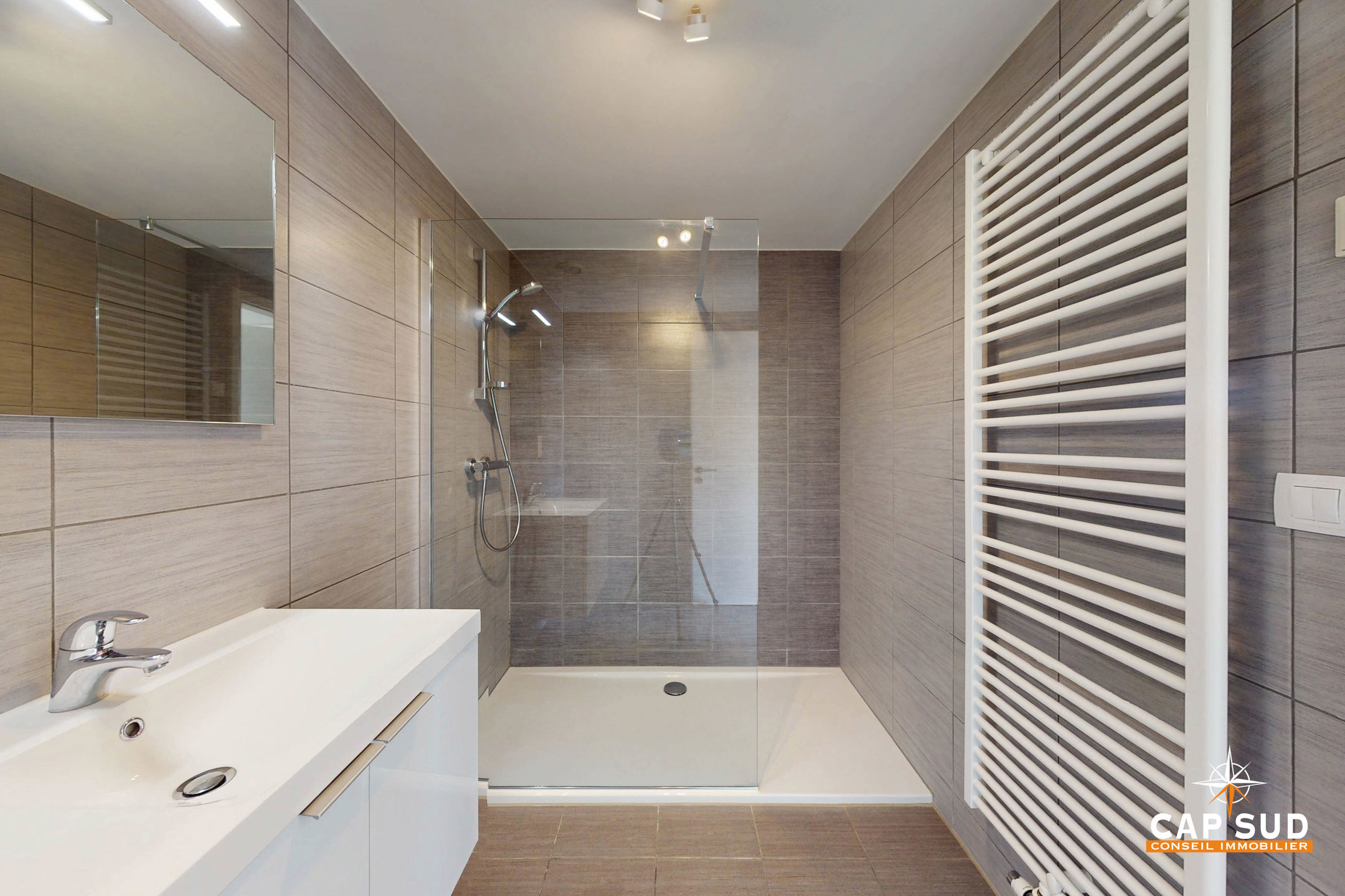 Cap Sud vous propose ce superbe appartement 1 chambre; très bonne situation: à 3 min de Louvain-la-Neuve, à 15 min à pied de la gare d’Ottignies et proche de toutes facilités! Il dispose d’un hall d’entrée, d’un séjour lumineux avec cuisine américaine entièrement équipée (four, lave-vaisselle, frigo, congélateur, taques,…), d’une buanderie, d’un WC séparé, d’une chambre, d’une sdb (douche à l’italienne), d’une terrasse orientée sud, d’une cave et d’un emplacement de parking au sous-sol. L’appartement est équipé de tous les luminaires et rideaux. Parking à velos.