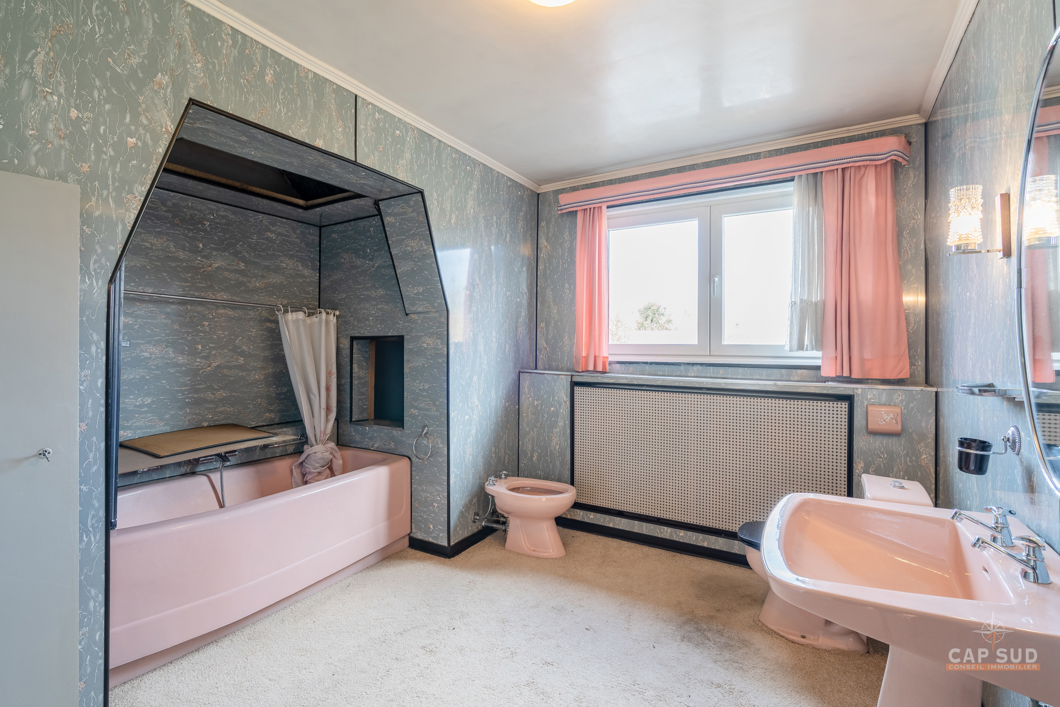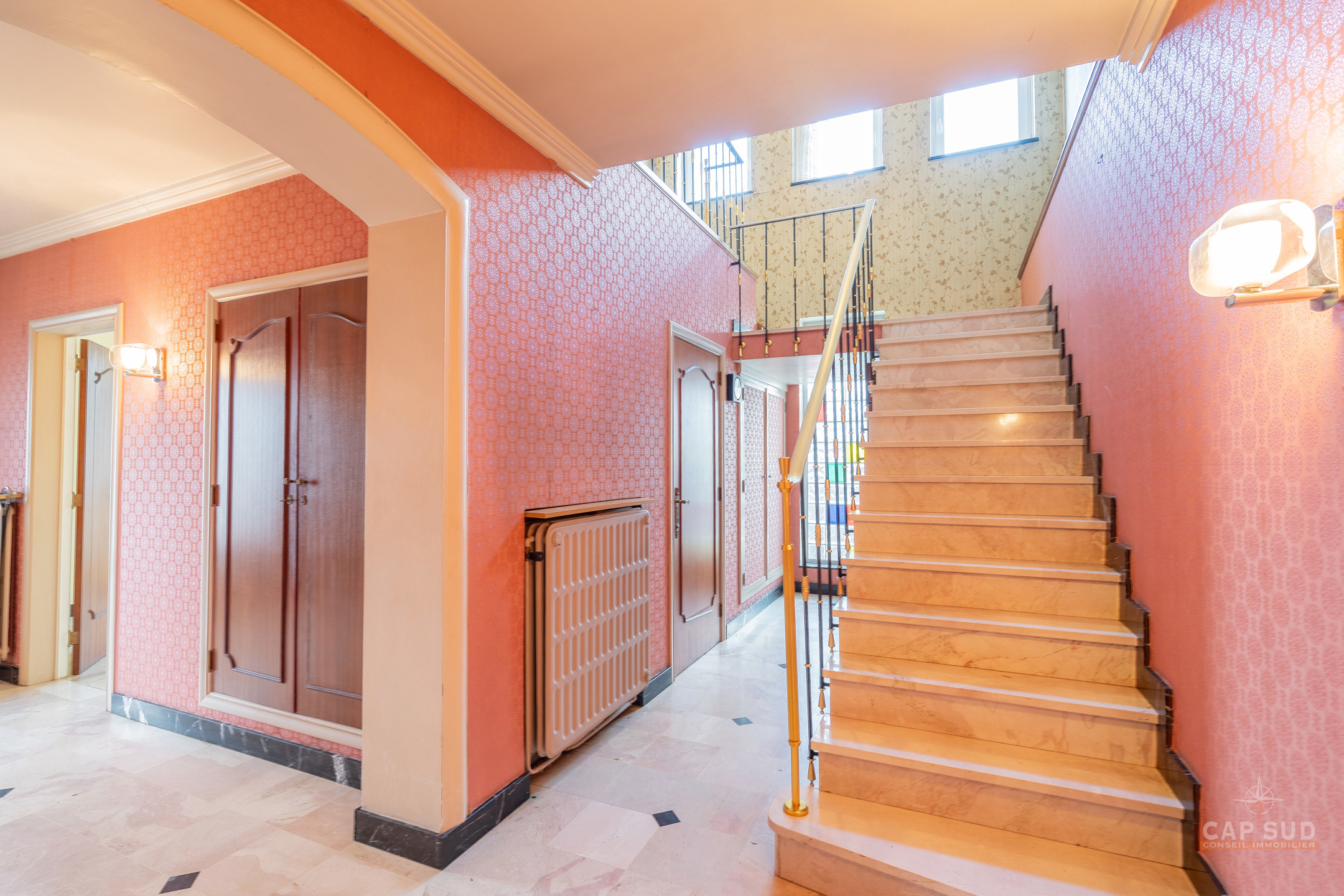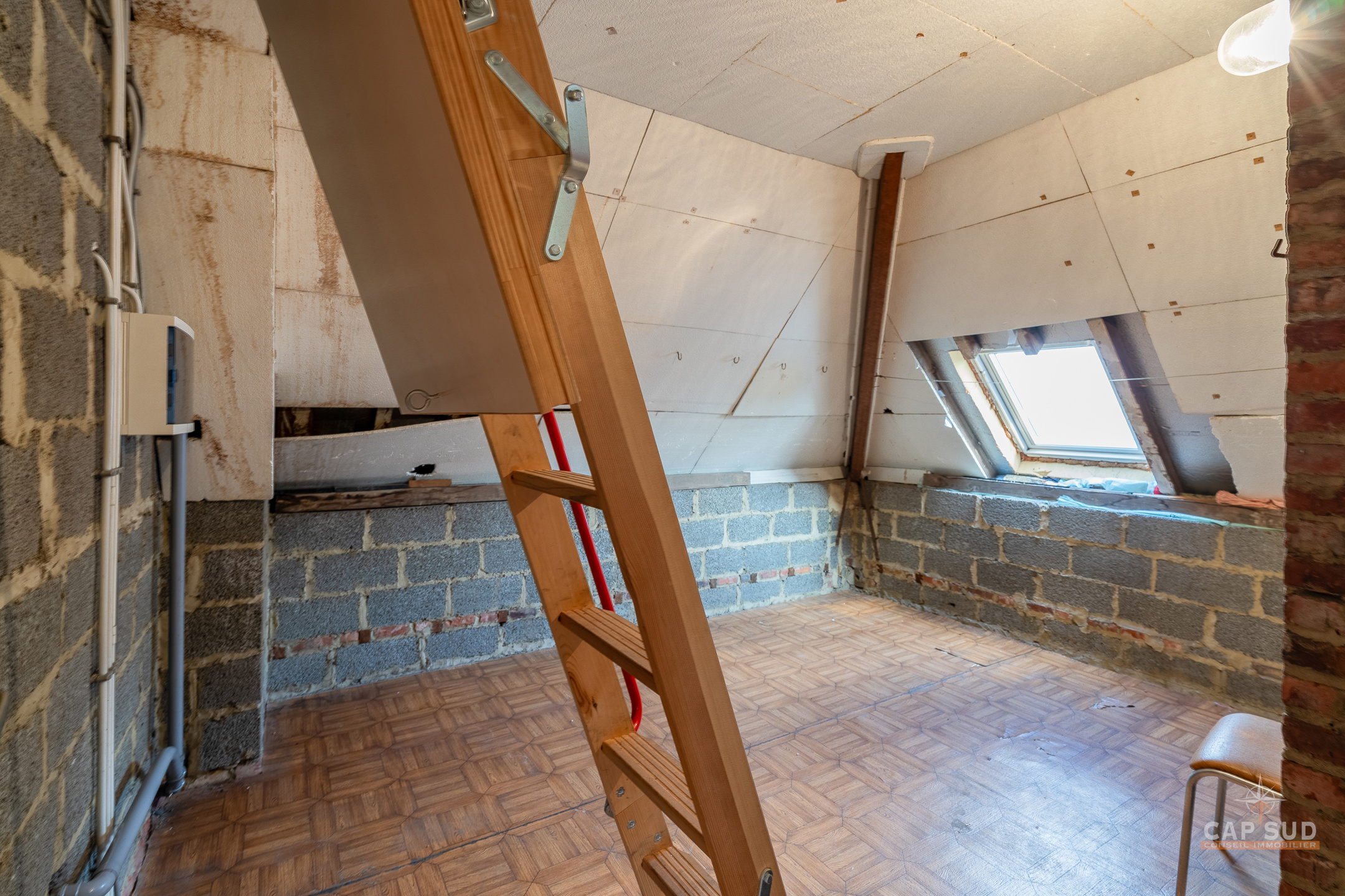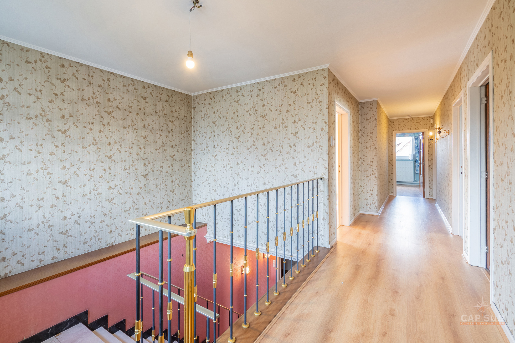 Waterloo – Quartier VERSAILLES – Idéalement située à proximité de toutes facilités (transports, écoles, commerces), CAP SUD vous propose cette grande villa familiale A RENOVER de 420m2 (dont 220m2 habitables actuellement) sise sur un terrain de 6,61ares orienté Ouest. Vous trouverez au rez-de-chaussée, un vaste hall d’entrée avec toutes ses commodités, un lumineux living de 47m2 avec feu ouvert (K7), un bureau (ou chambre) de 14m2, une cuisine équipée de 12m2 donnant sur le jardin, une arrière cuisine ainsi qu’une buanderie. Au 1er étage, le hall de nuit dessert 3 belles chambres de 23, 20 et 16m2, une salle de bains de 12m2 et un grenier (possibilité chambre) de 15m2. Au 2ème étage, il y a un grand grenier aménageable de 50m2 sous pentes. Toute la villa est sous caves et garage (2 voitures) pour une superficie totale de 130m2. Terrasse arrière de 50m2 donnant sur le jardin sans vis-à-vis. NOUVELLE toiture (et isolation) de 2015, châssis en PVC de 2011, NOUVELLE chaudière Vaillant de 2020, PEB C : 234kWh/an.m2, système d’alarme, volets automatiques, adoucisseur, parking extérieur… Vous recherchez de grands espaces? Venez la découvrir rapidement !