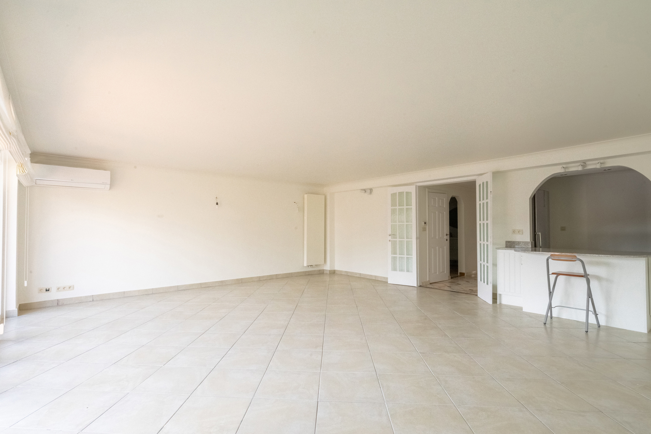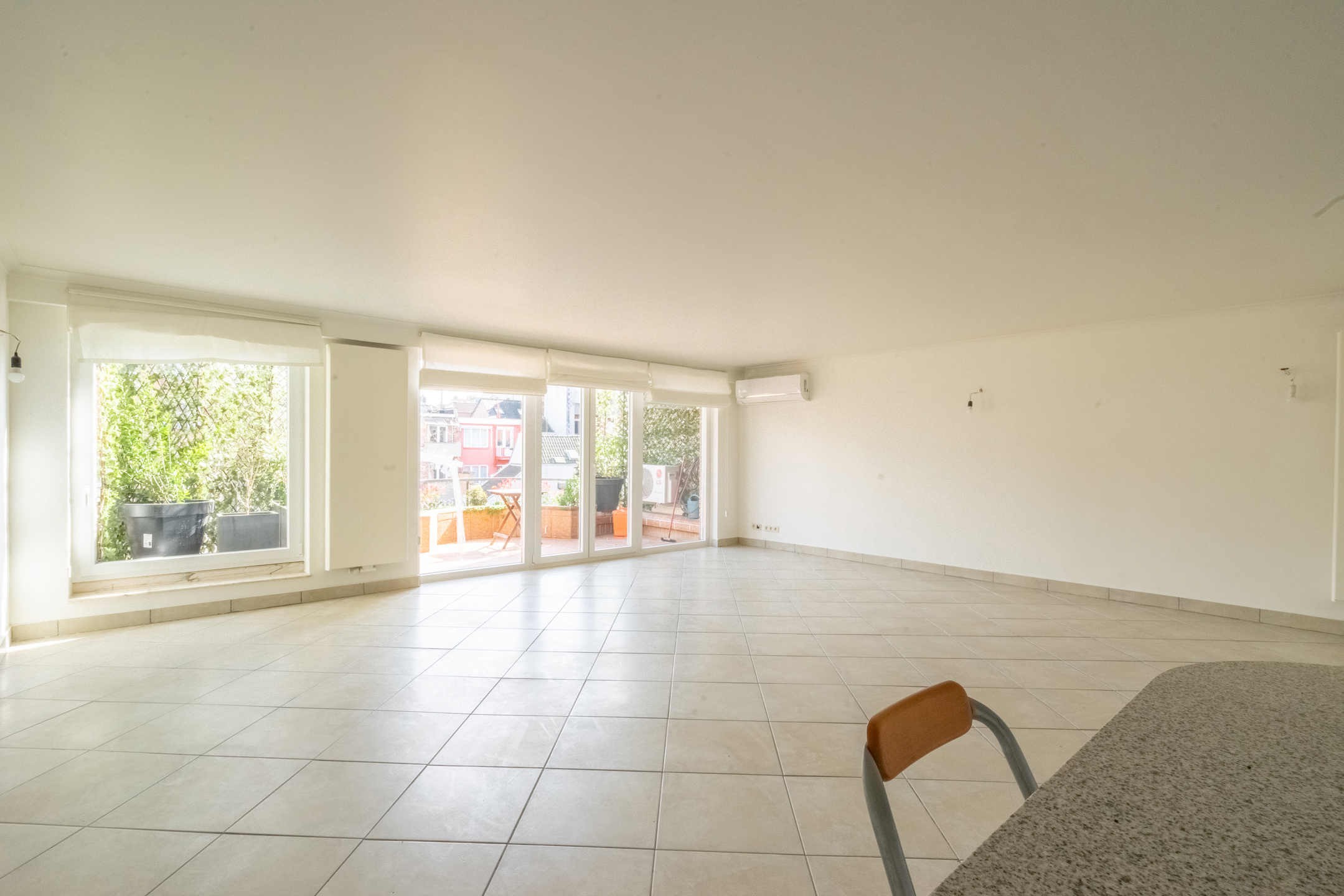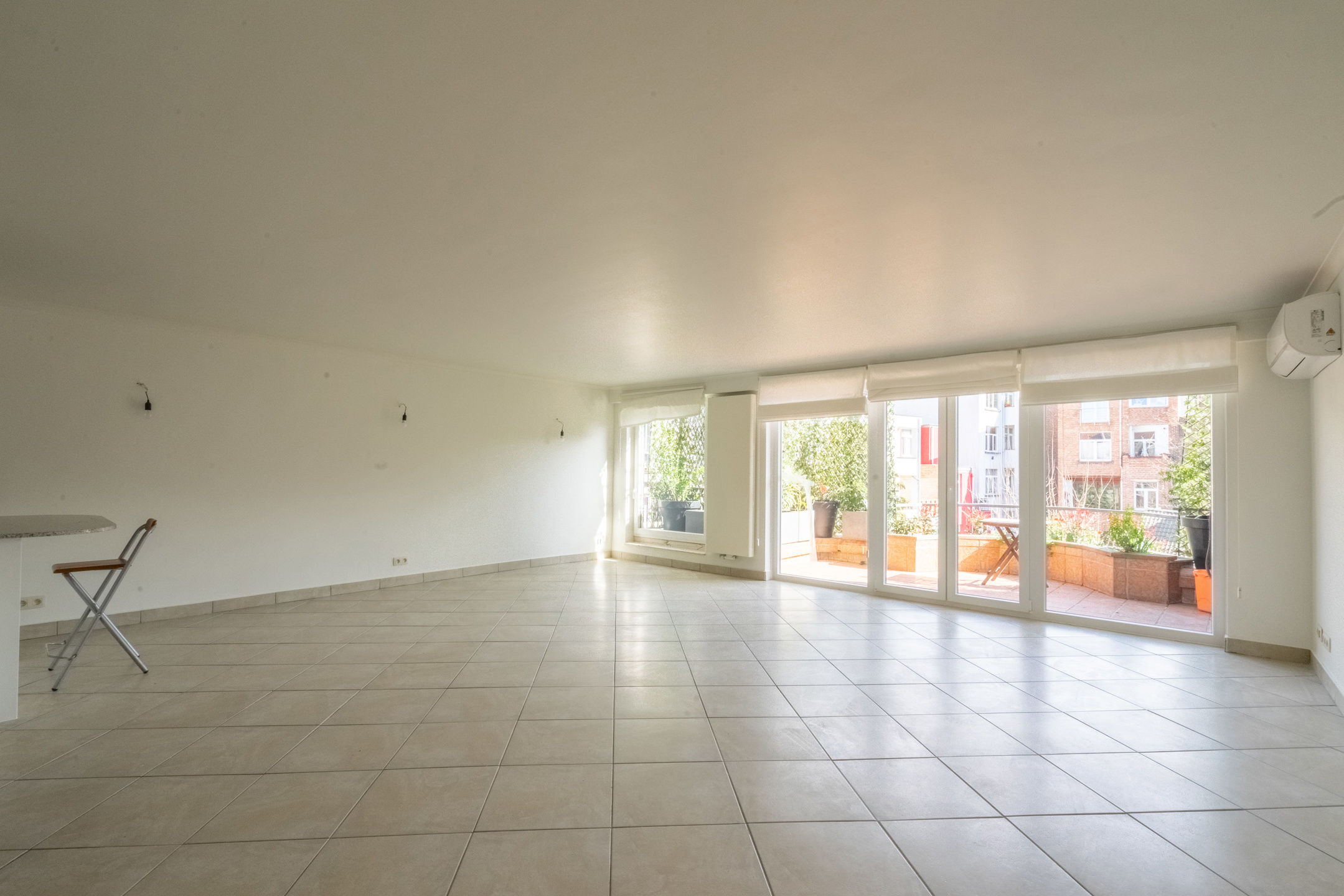 L’appartement dispose d’un vaste living de ± 42m² avec une cuisine ouverte super-équipée, le tout donnant accès à une agréable terrasse de ± 10m² orientée SUD. L’espace nuit se compose de deux chambres (± 13,5m² et ± 12m²) équipées de placards intégrés. Le bien comprend également une salle de bain (douche dans le bain), un hall d’entrée avec placard, une toilette séparée ainsi qu’une buanderie équipée d’un lave-linge et d’un sèche-linge.