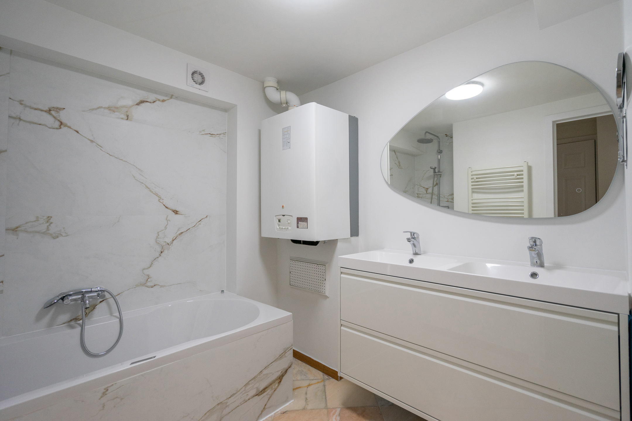 Charges : Forfait de 80 €/mois (comprenant : électricité et nettoyage des communs, entretien de la chaudière individuelle et de l’adoucisseur d’eau).
