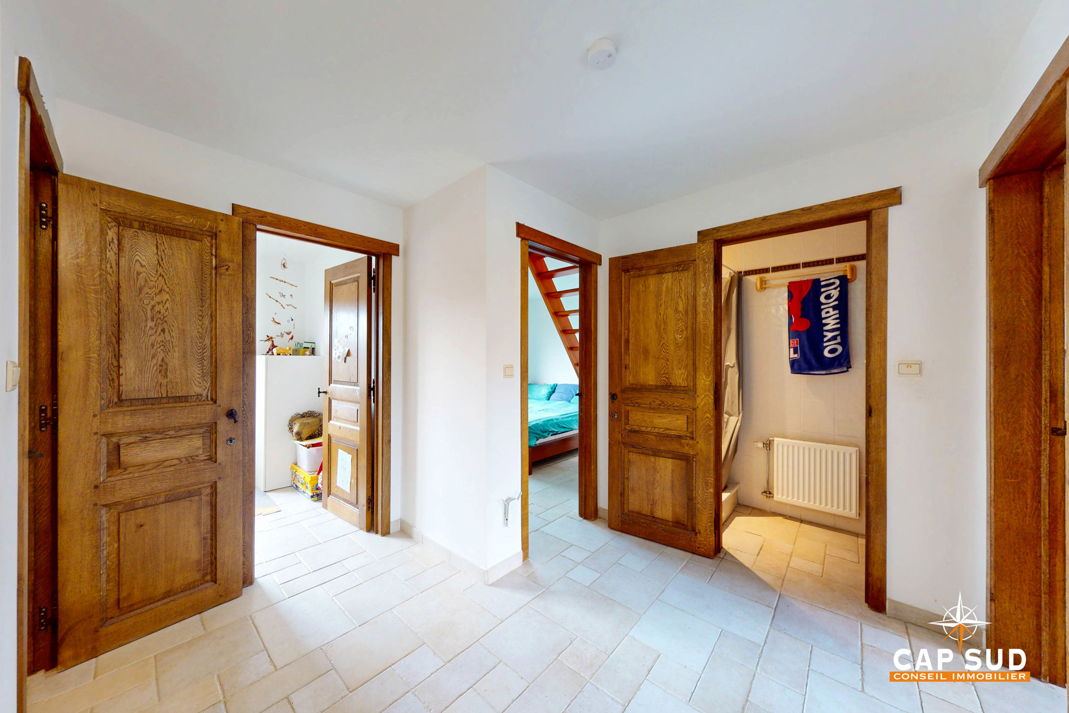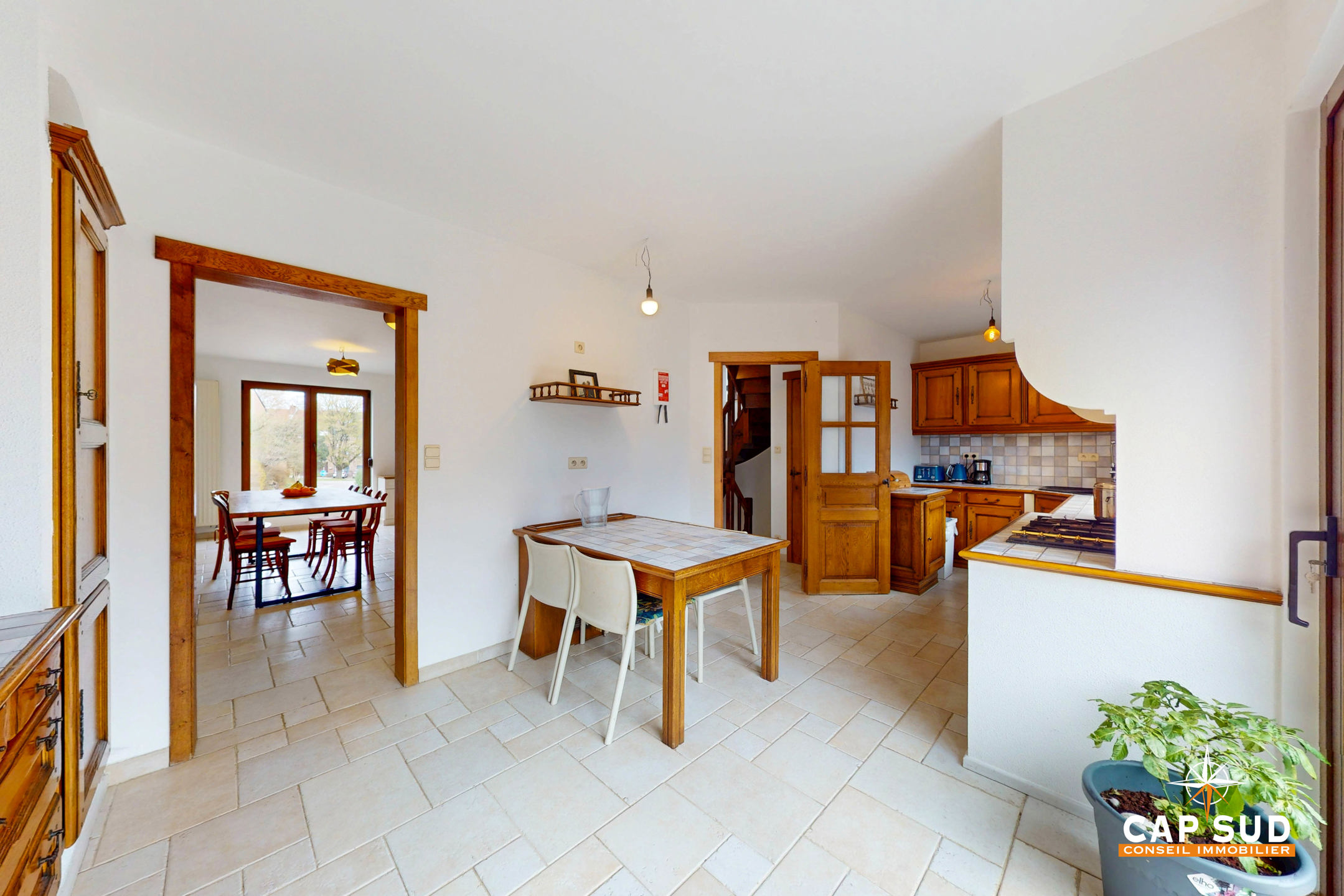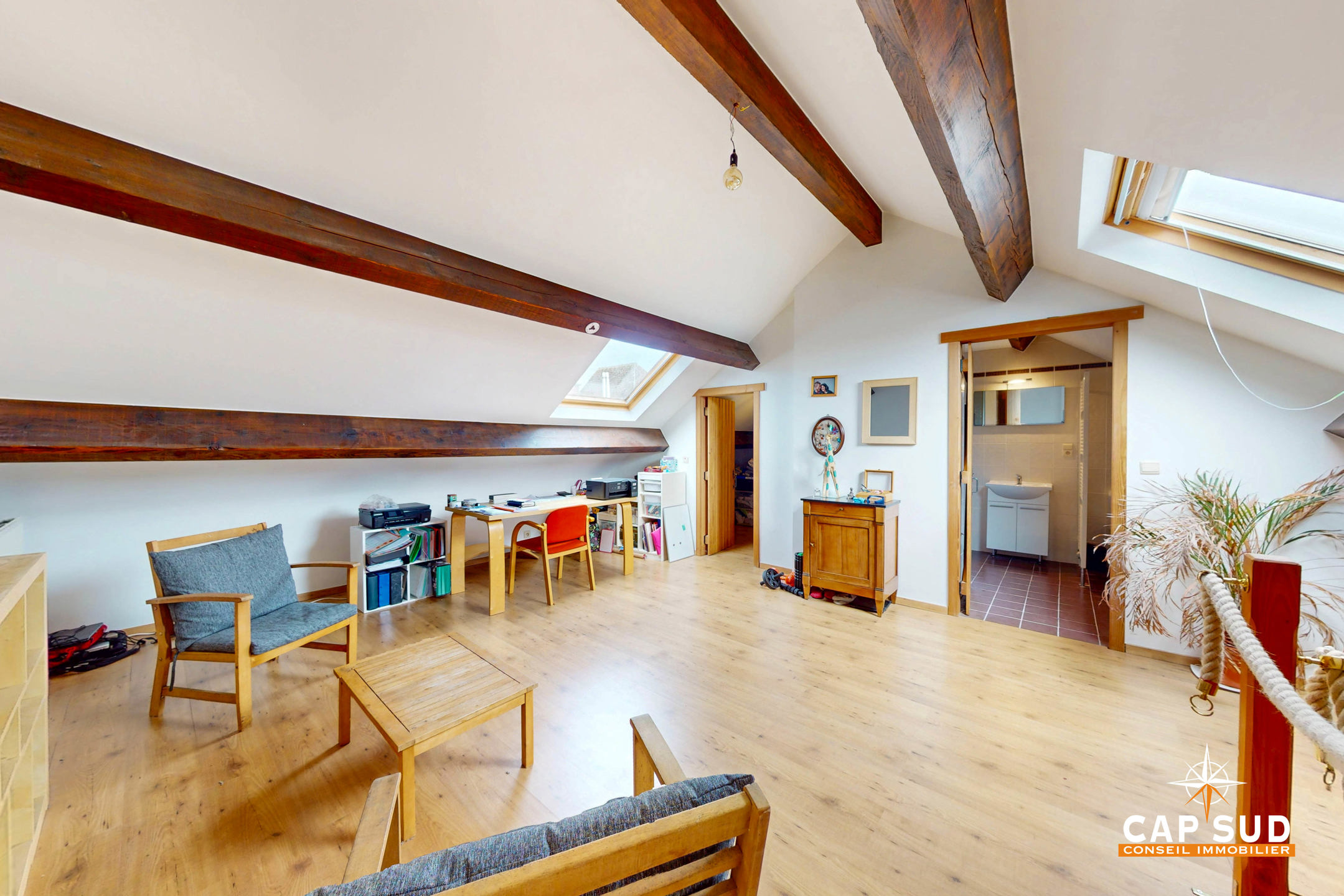 Au niveau de vie, un vaste séjour baigné de lumière naturelle s’ouvre sur une atmosphère chaleureuse et conviviale. La cuisine équipée, fonctionnelle donne un accès direct à une agréable terrasse, idéale pour profiter des beaux jours.