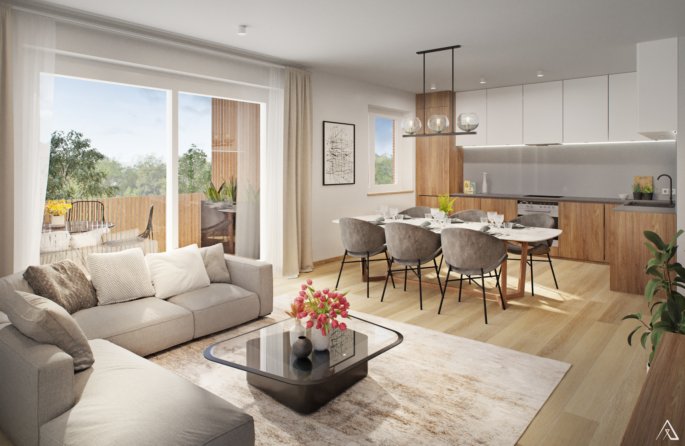 ➡️ Immeuble de 12 unités avec ascenseur (R+3) au cœur de l’écoquartier Bella Terra.