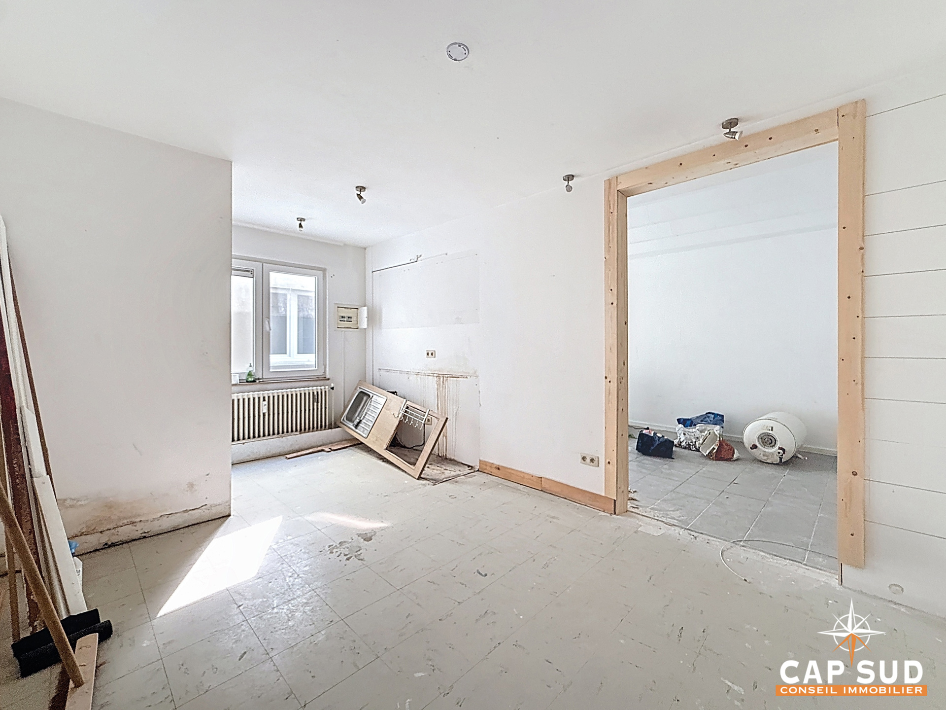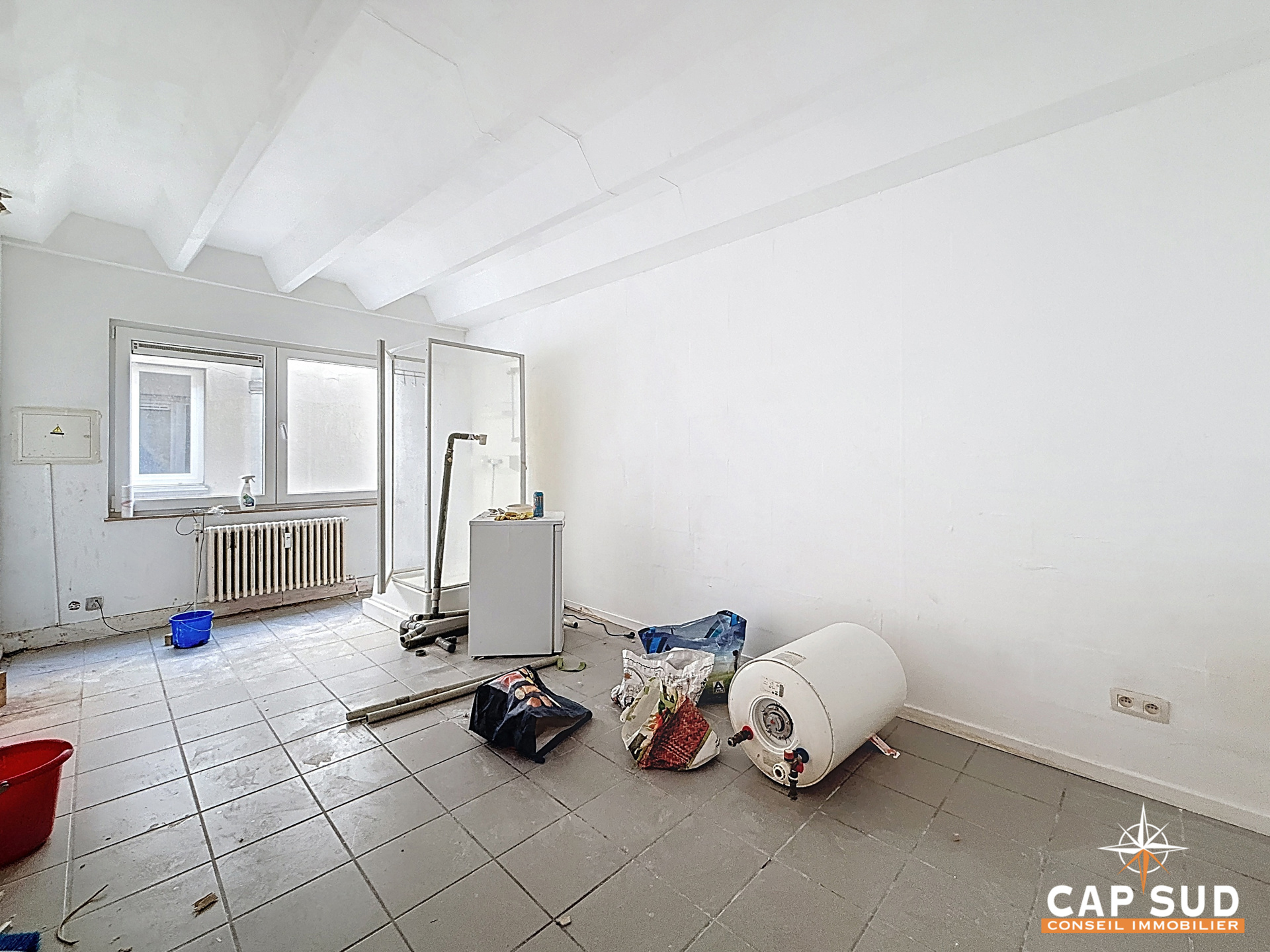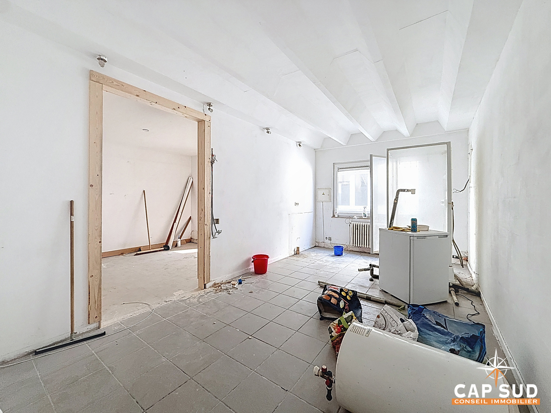 Ce bien, issu de la réunion de deux unités, développe une superficie totale de 38 m². Une première transformation a déjà été réalisée, offrant une base intéressante pour un projet sur mesure. L’ensemble est à rénover, ce qui permet d’optimiser pleinement l’aménagement et la rentabilité selon votre stratégie.