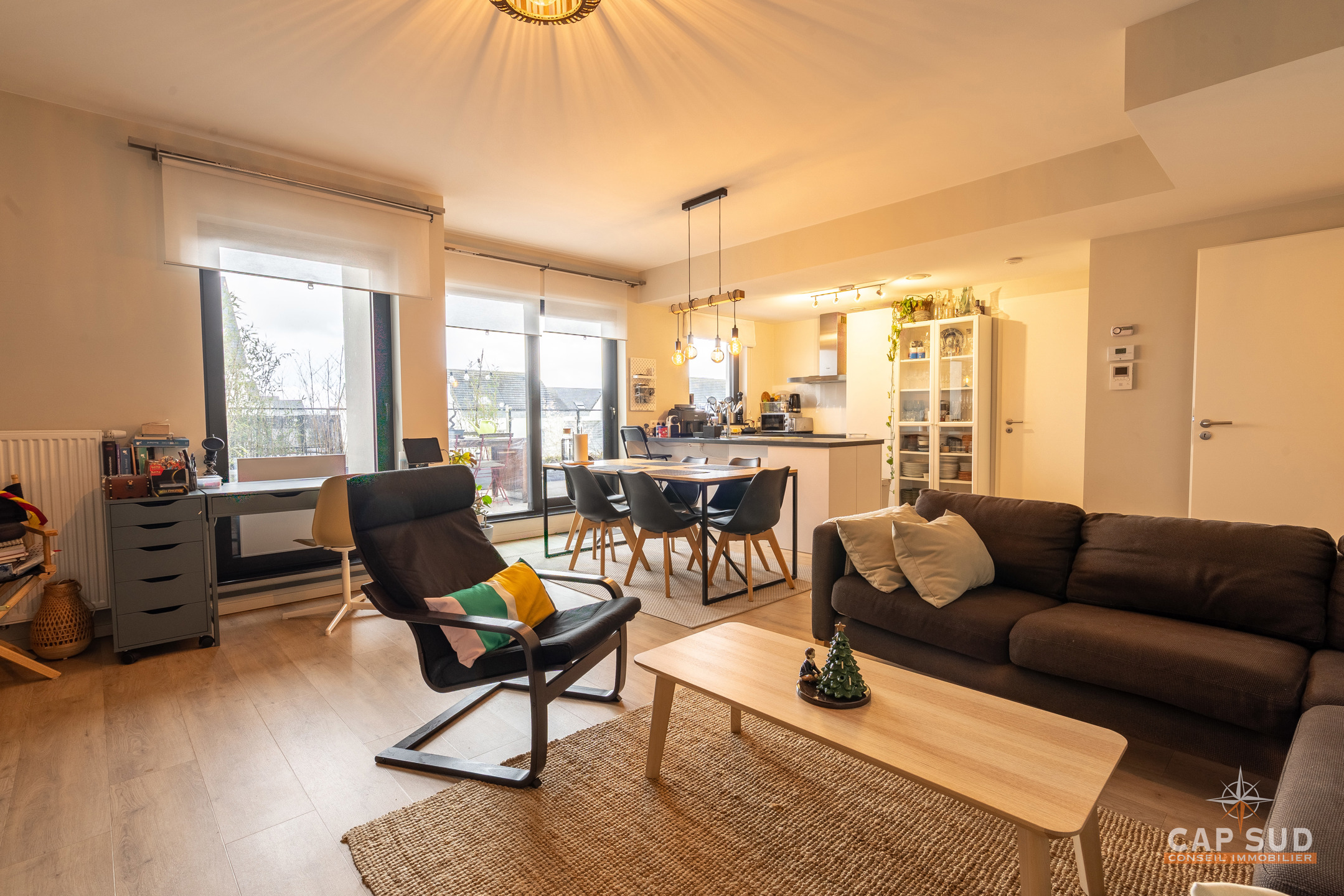 NIVELLES. Cap Sud vous propose un magnifique appartement dans un petit immeuble sécurisé, situé proche des commerces, des grands axes. Il est situé au 1er étage et se compose d’un hall d’entrée, un WC séparé, un living de +-45m² donnant vers une terrasse orienté SO, une cuisine super-équipée. 2 chambres (16 et 15m²), une salle d’eau (bain, douche, deux lavabos), une buanderie.