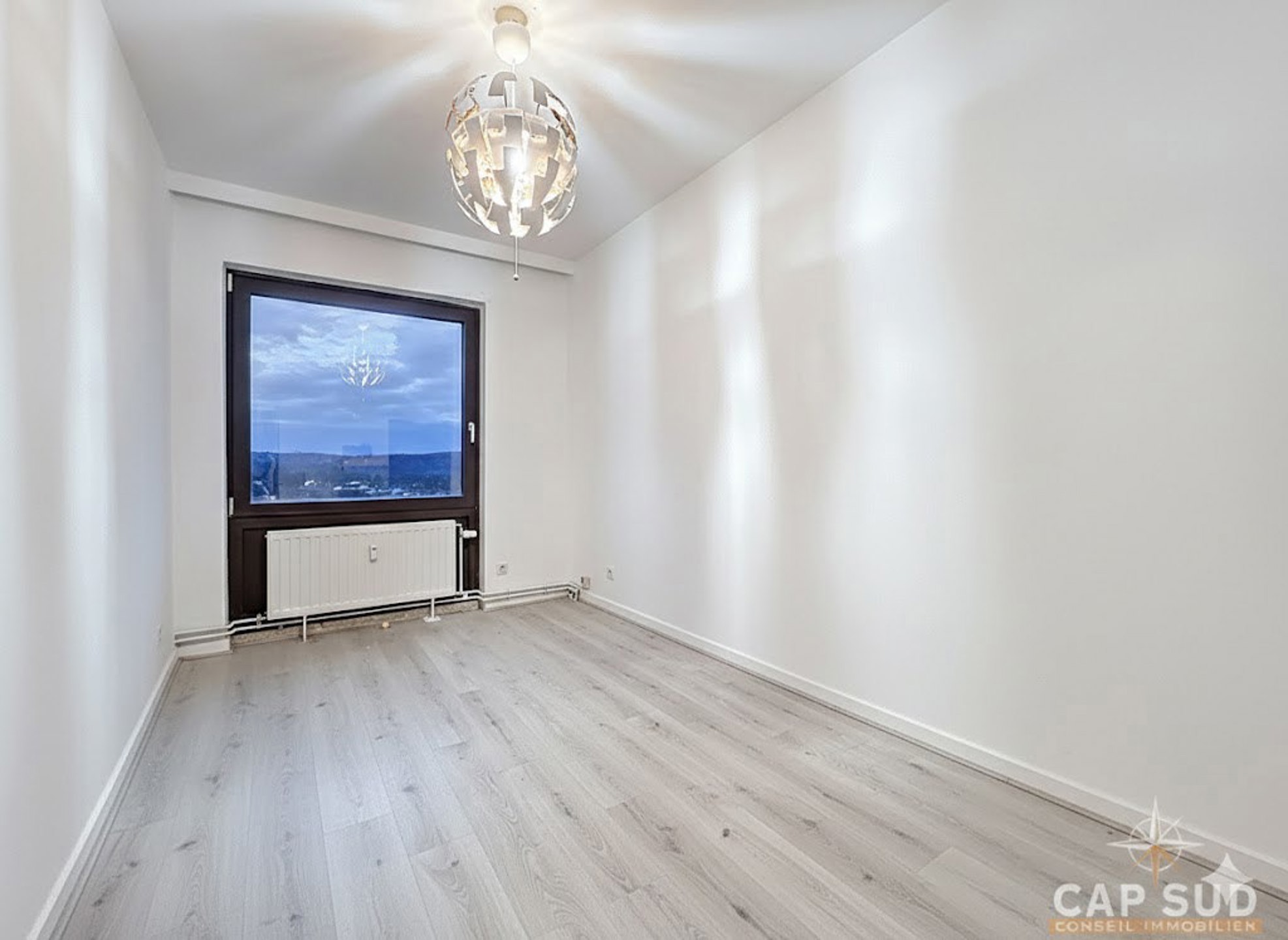 Une cave et emplacements de parkings communs complètent l’ensemble et l’appartement bénéficie d’une très belle vue.