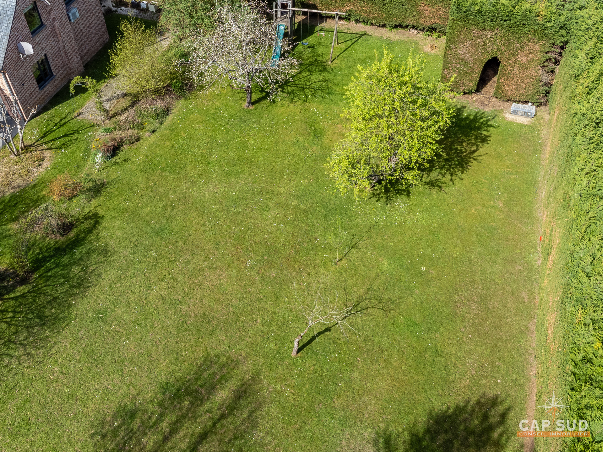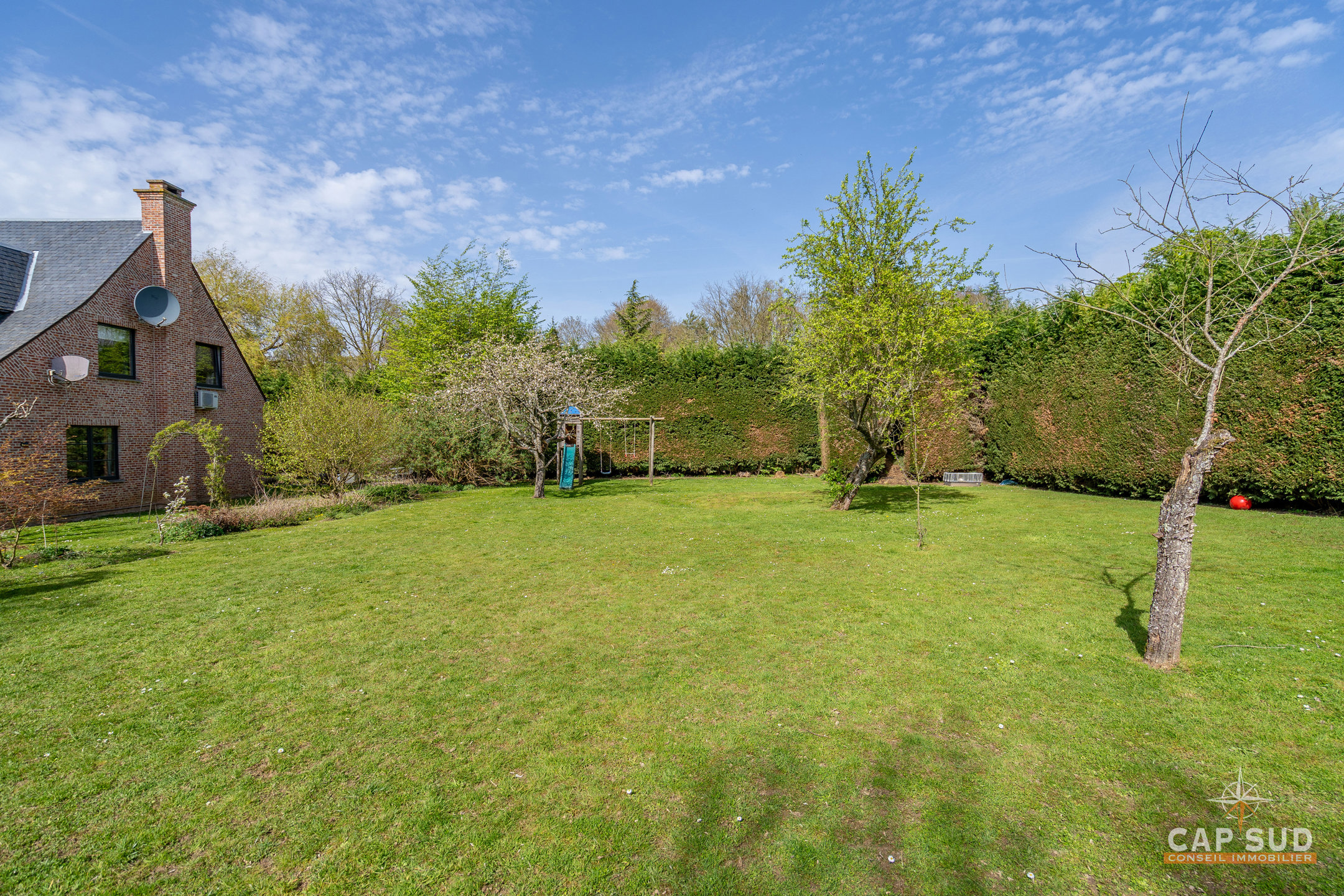 À l’extérieur, le jardin, bien orienté, propose un bel espace de détente, dans un environnement verdoyant et agréable.