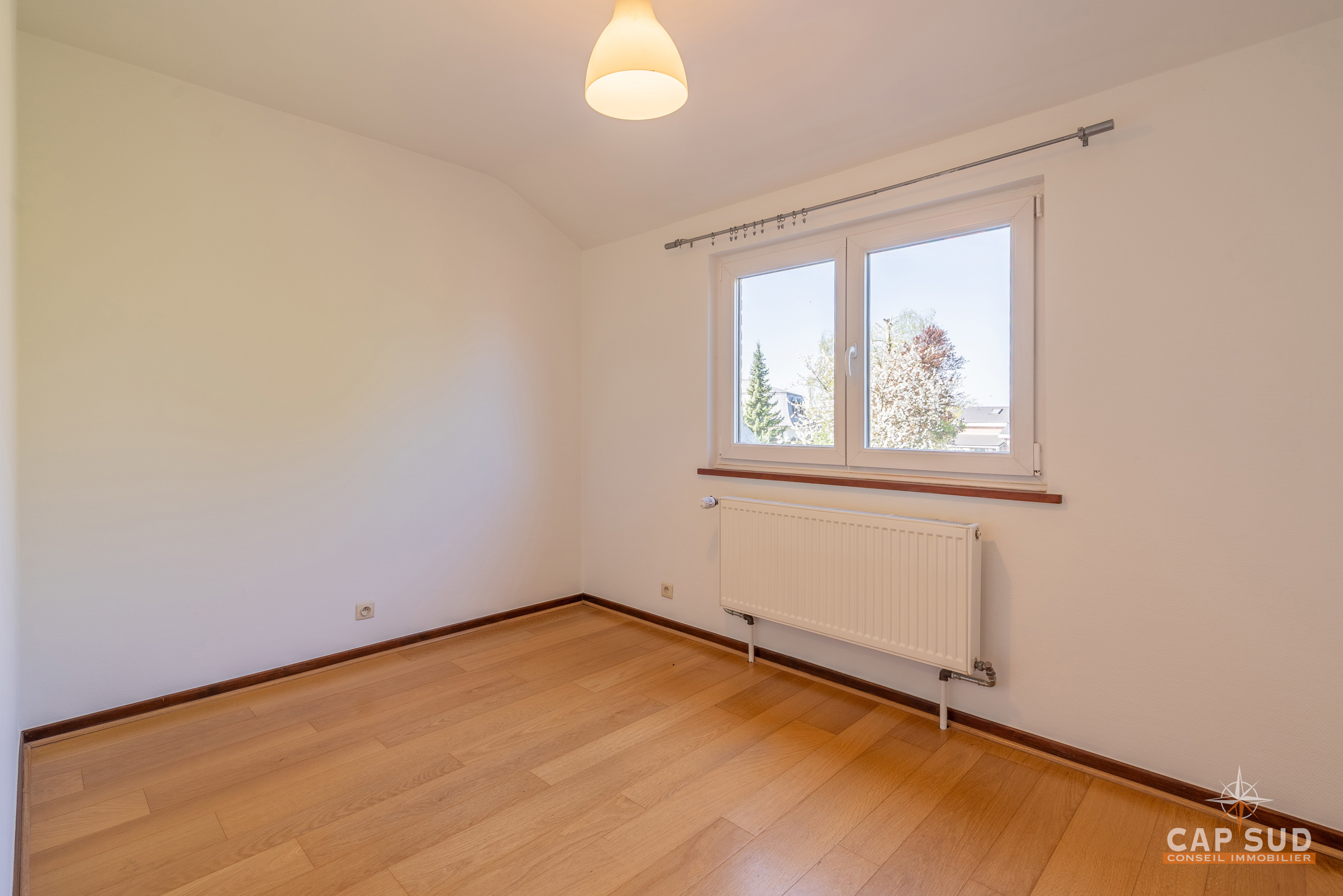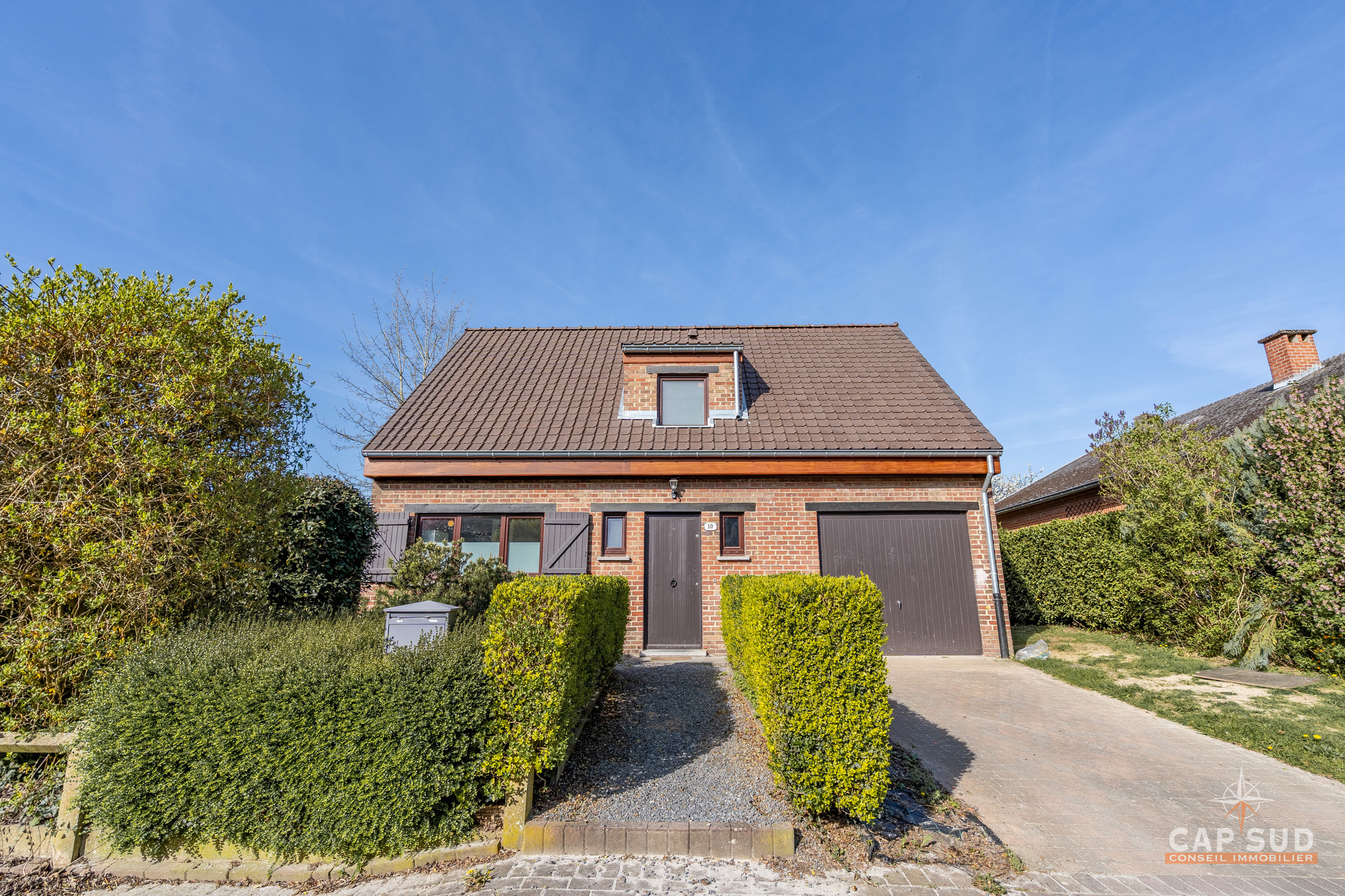La maison dispose également d’un grenier de rangement et d’un garage avec espace buanderie. Volets manuels.