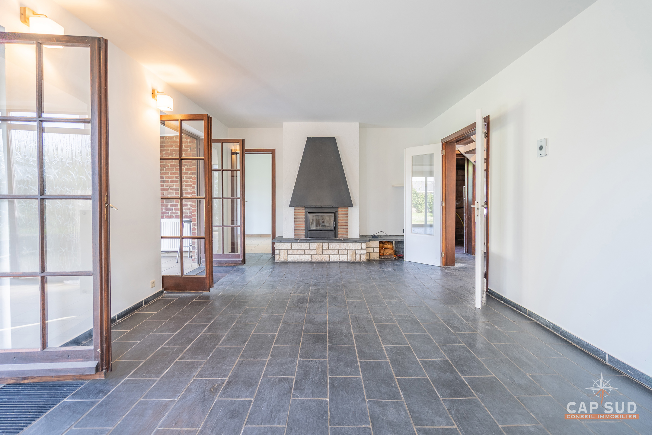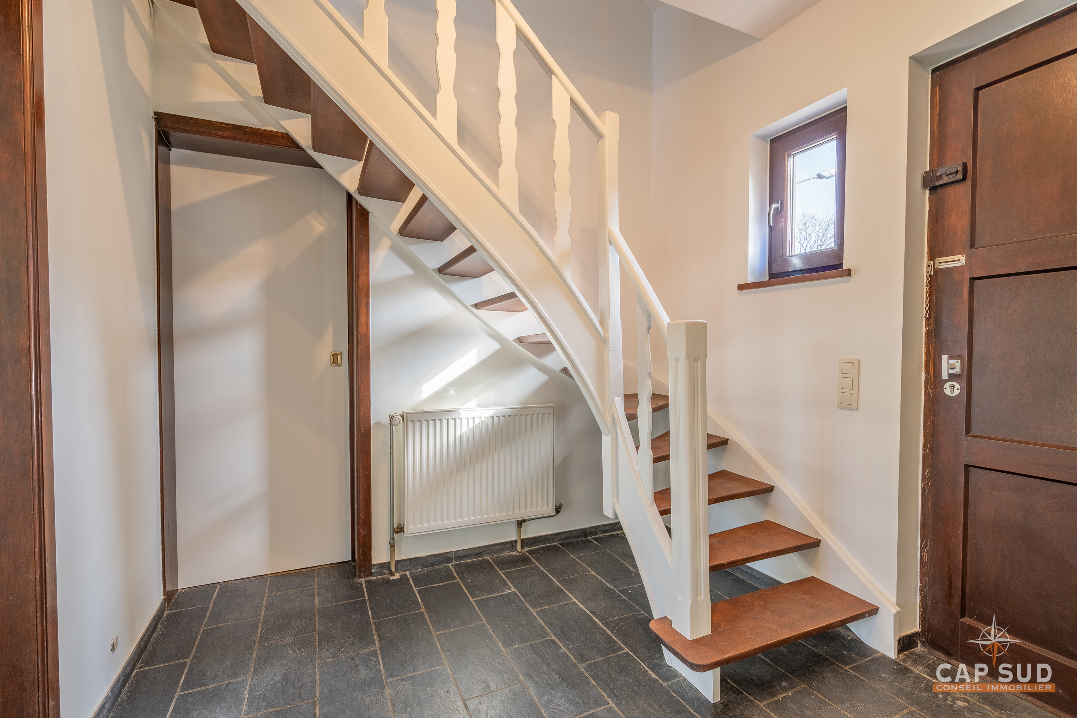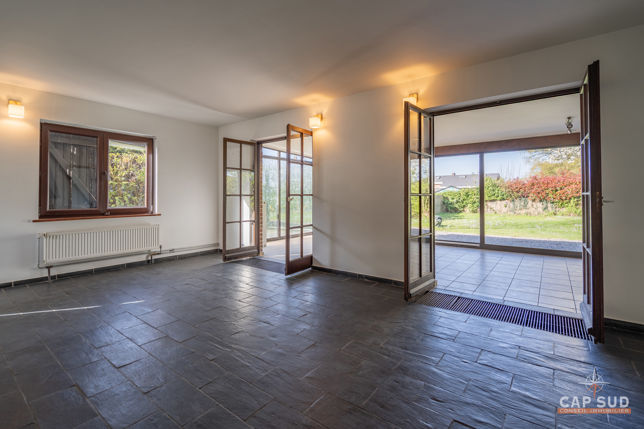 Au rez-de-chaussée, vous trouverez un hall d’entrée menant à un séjour lumineux d’environ 30 m² avec cassette (K7), un WC séparé, une cuisine super-équipée, un bureau ainsi qu’une véranda donnant accès au jardin d’environ 6 ares, parfaitement orienté sud-ouest.