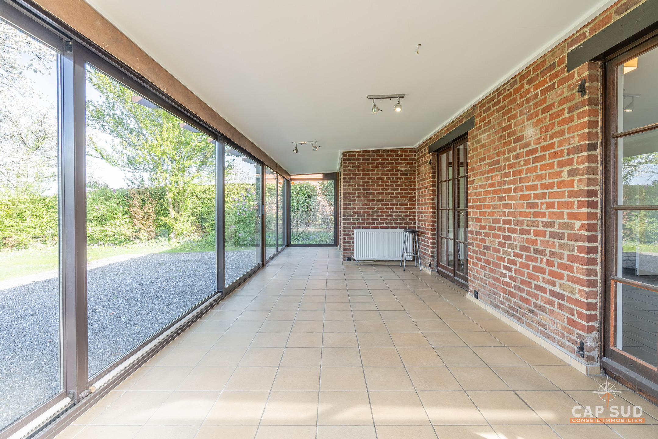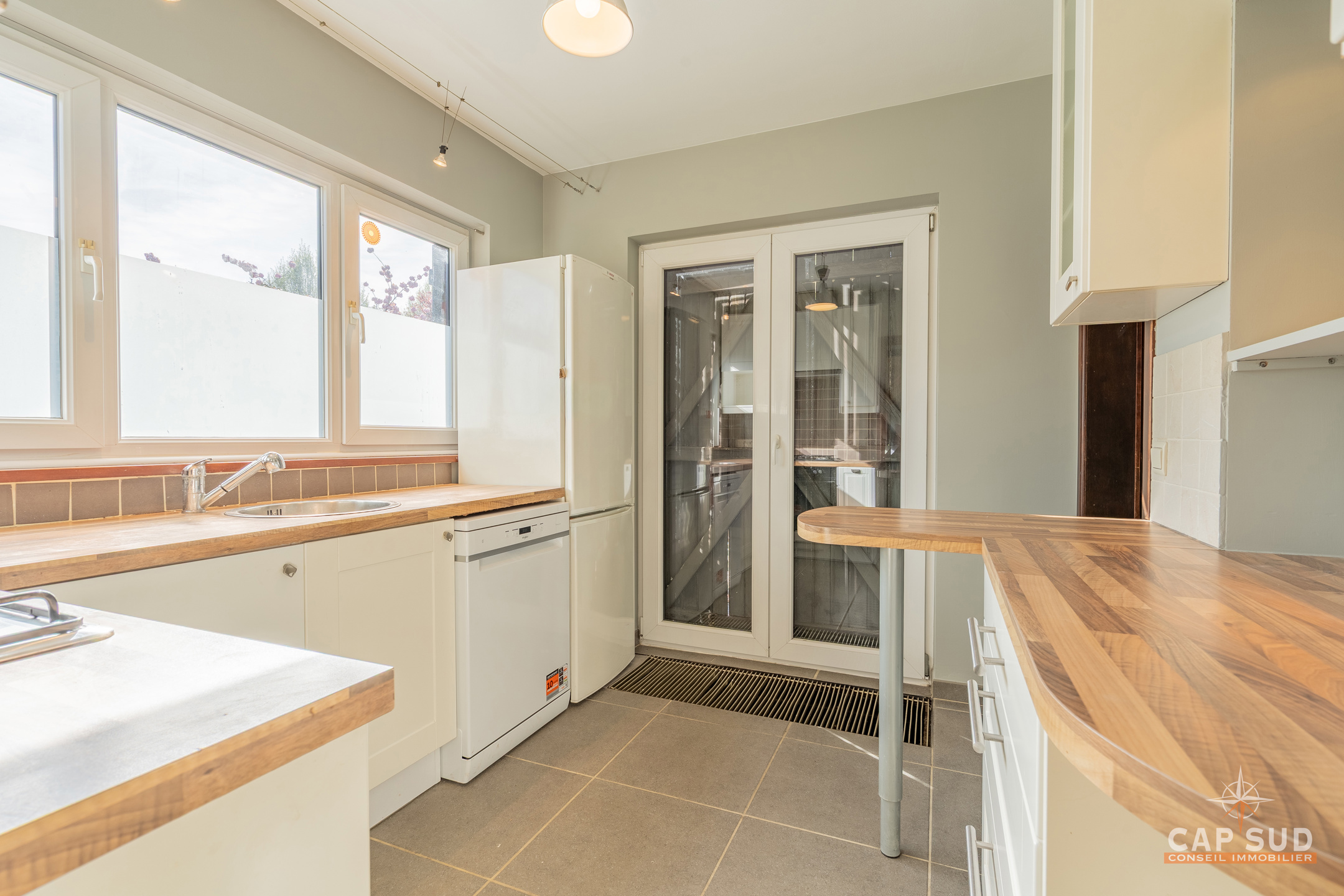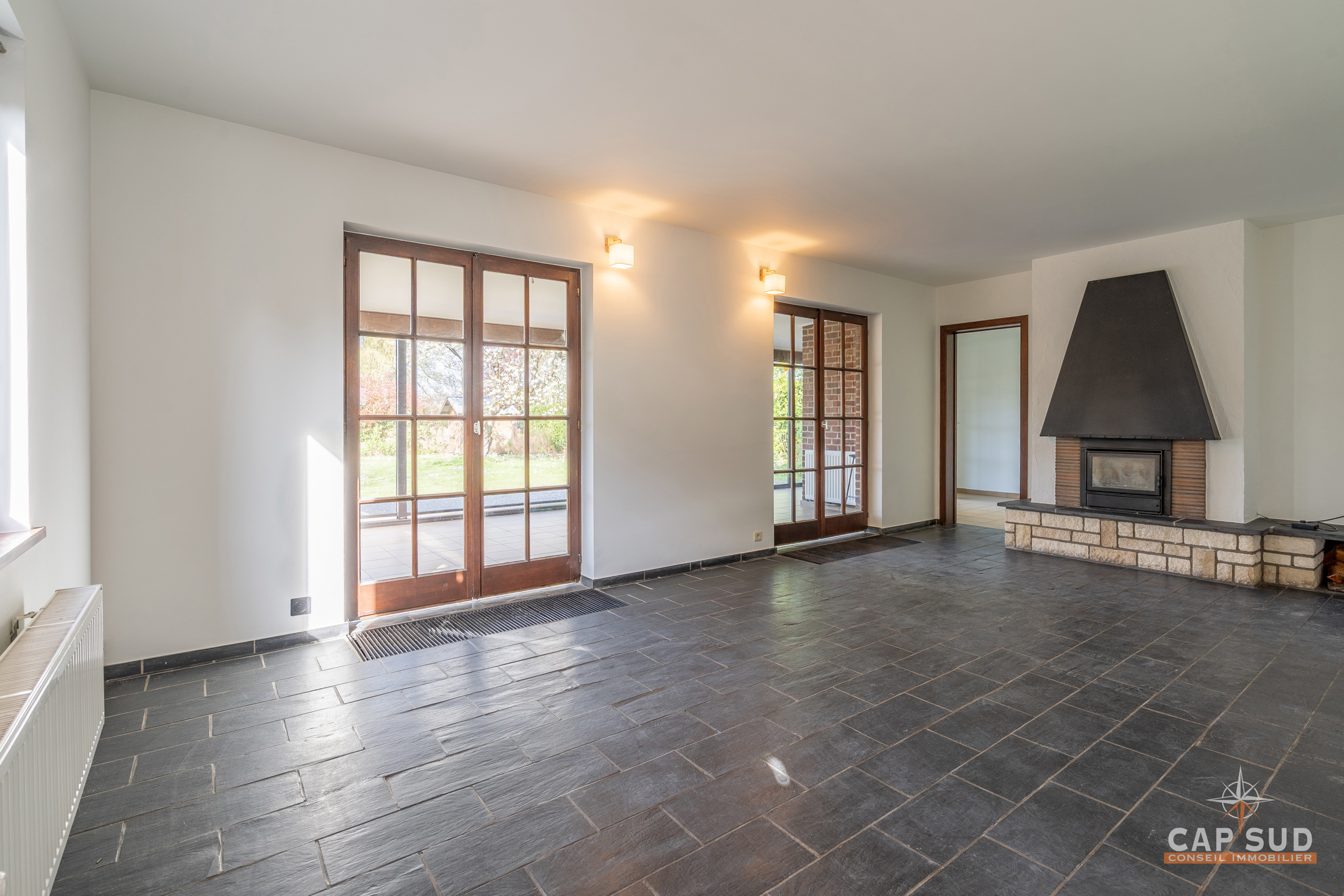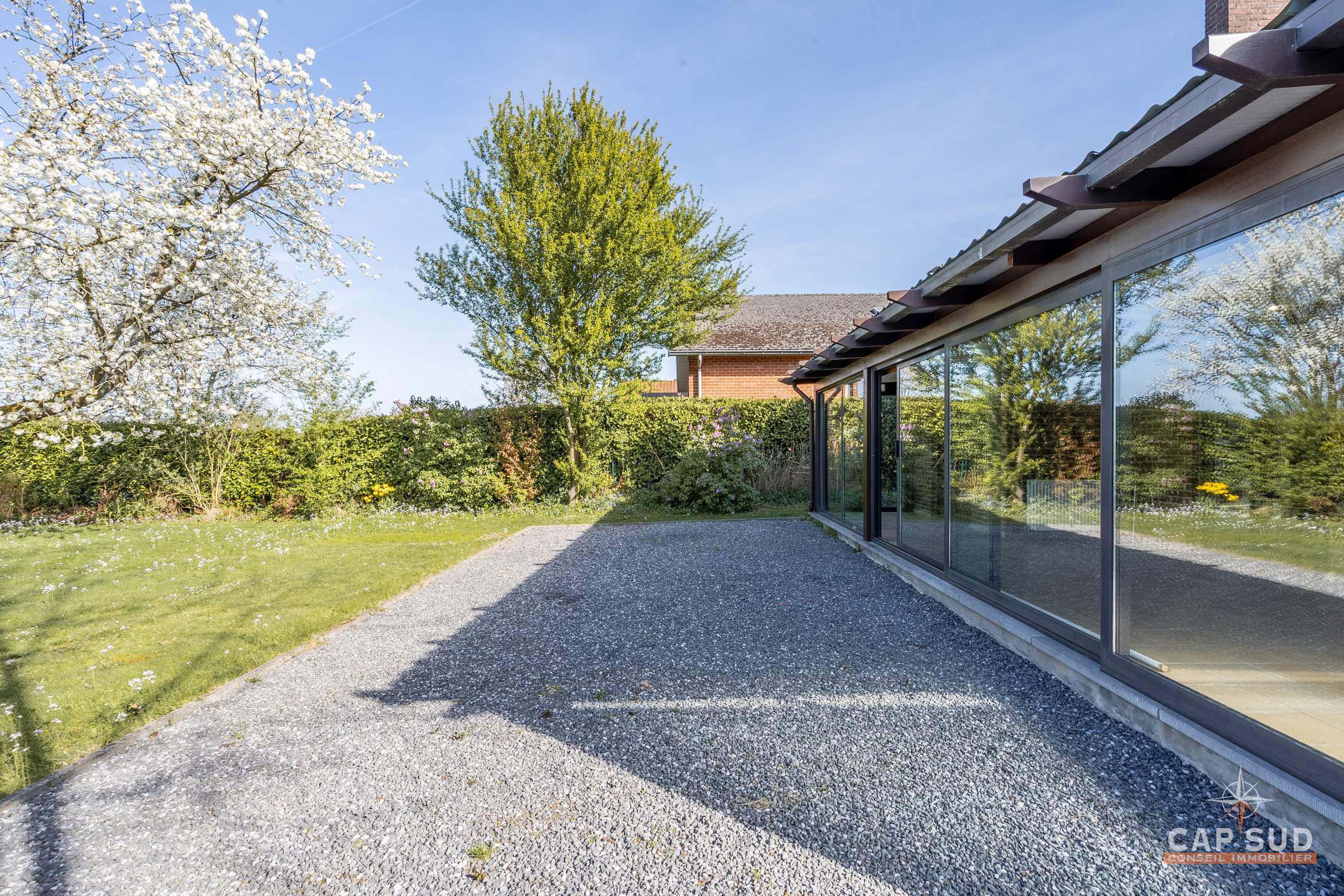 Au rez-de-chaussée, vous trouverez un hall d’entrée menant à un séjour lumineux d’environ 30 m² avec cassette (K7), un WC séparé, une cuisine super-équipée, un bureau ainsi qu’une véranda donnant accès au jardin d’environ 6 ares, parfaitement orienté sud-ouest.