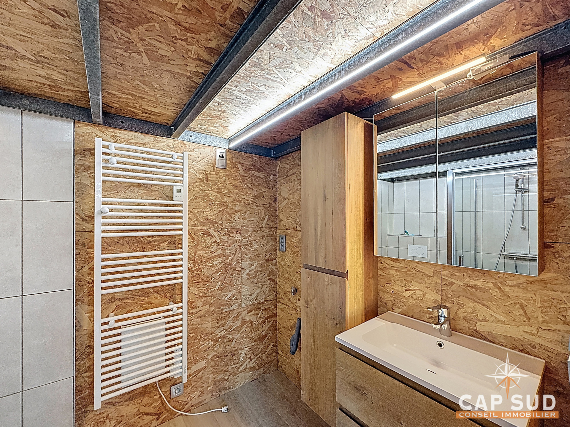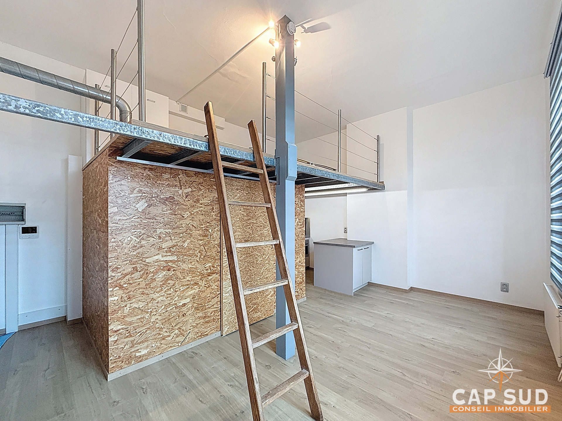Ce bien moderne et fonctionnel se compose d’un agréable séjour comprenant un espace cuisine offrant un cadre de vie convivial et optimisé. Vous y trouverez également une salle de douche avec emplacement prévu pour une machine à laver, ainsi qu’une mezzanine servant de chambre, apportant une belle séparation des espaces.