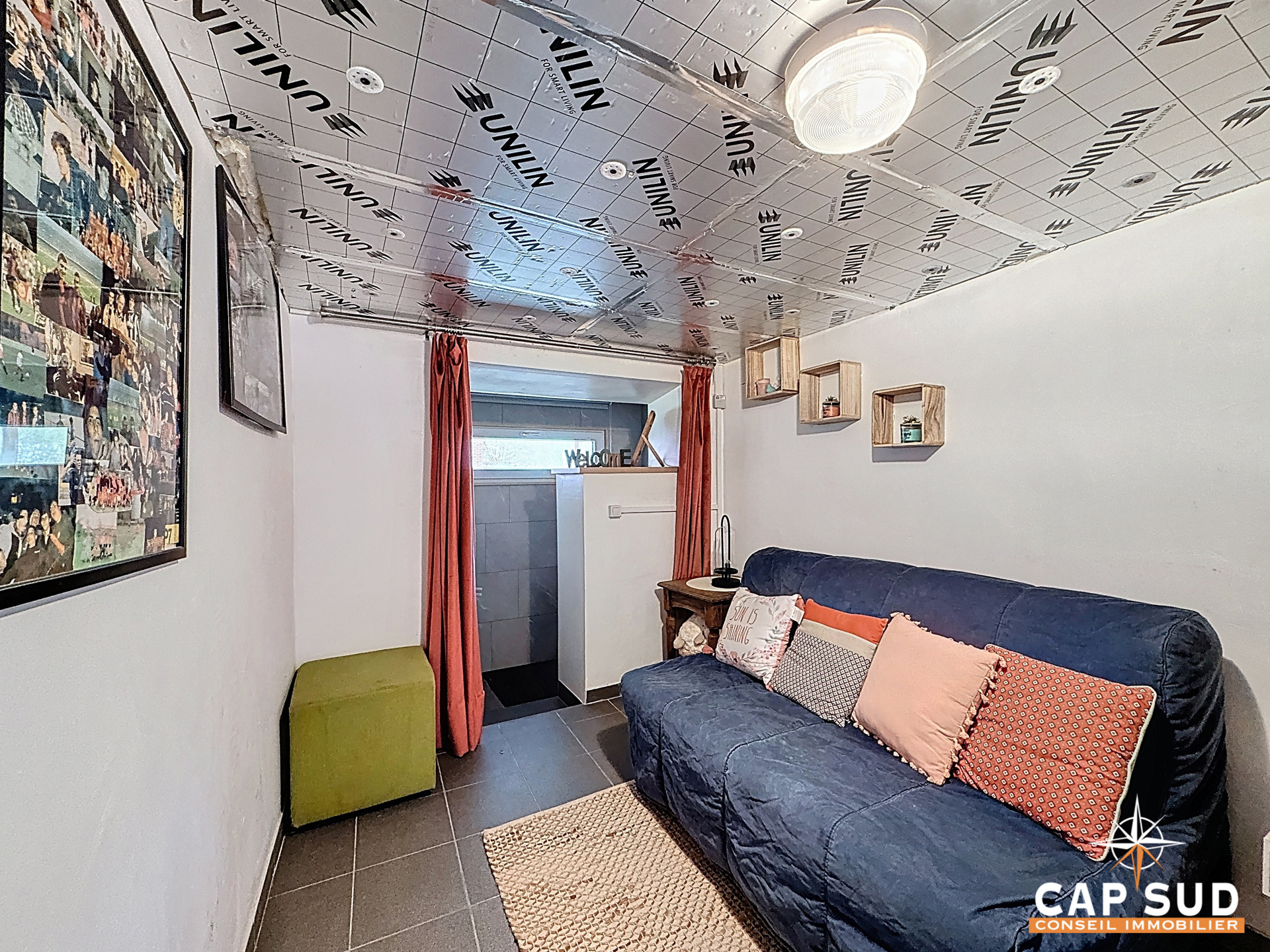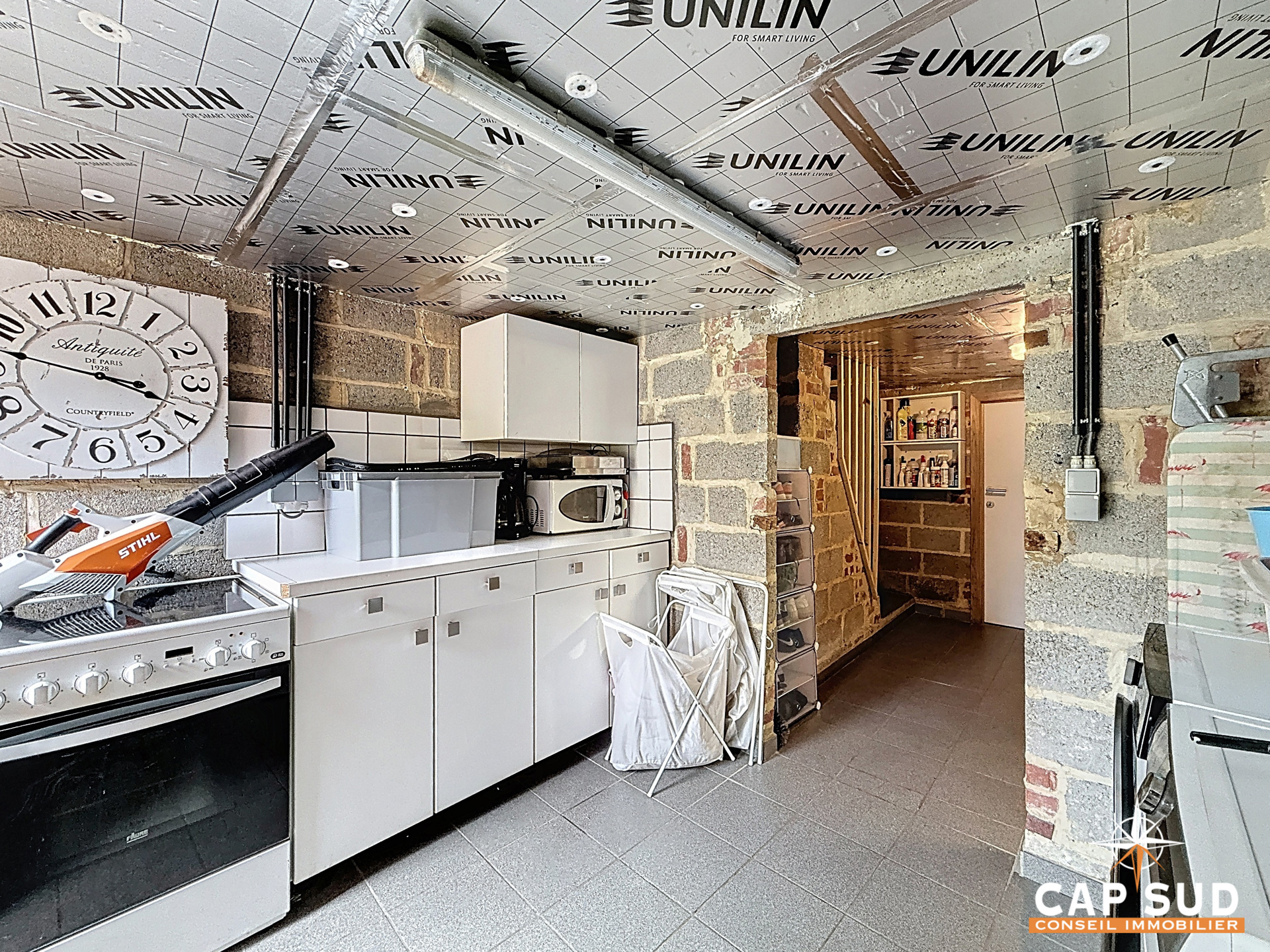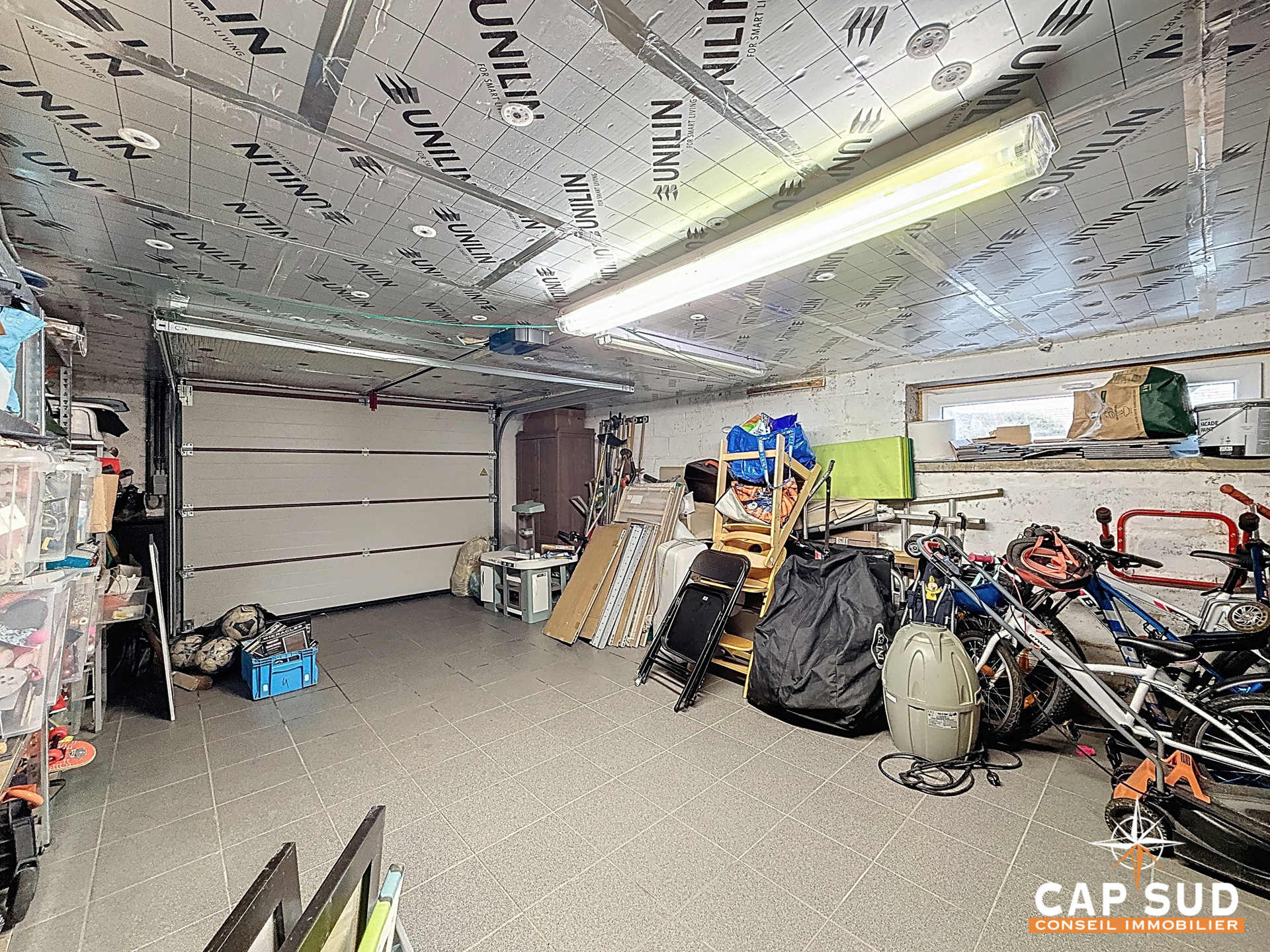 Au sous-sol (entièrement carrelé) : un garage avec porte électrique, caves, une cuisine d’été avec buanderie et une pièce polyvalente (chambre d’amis, bureau etc) avec wc.