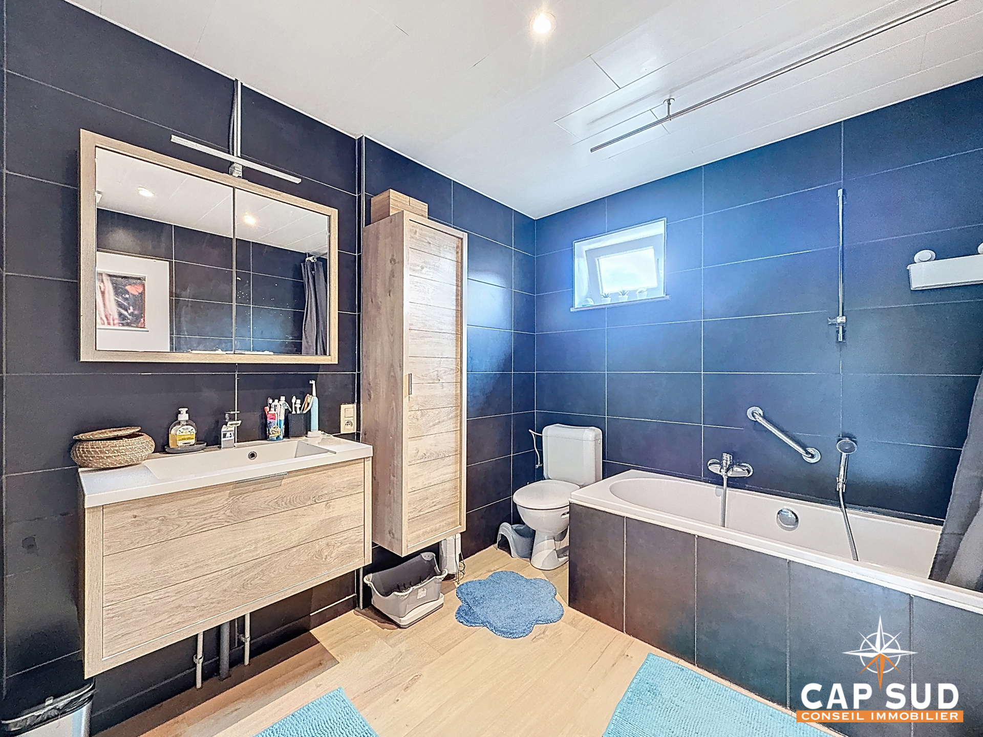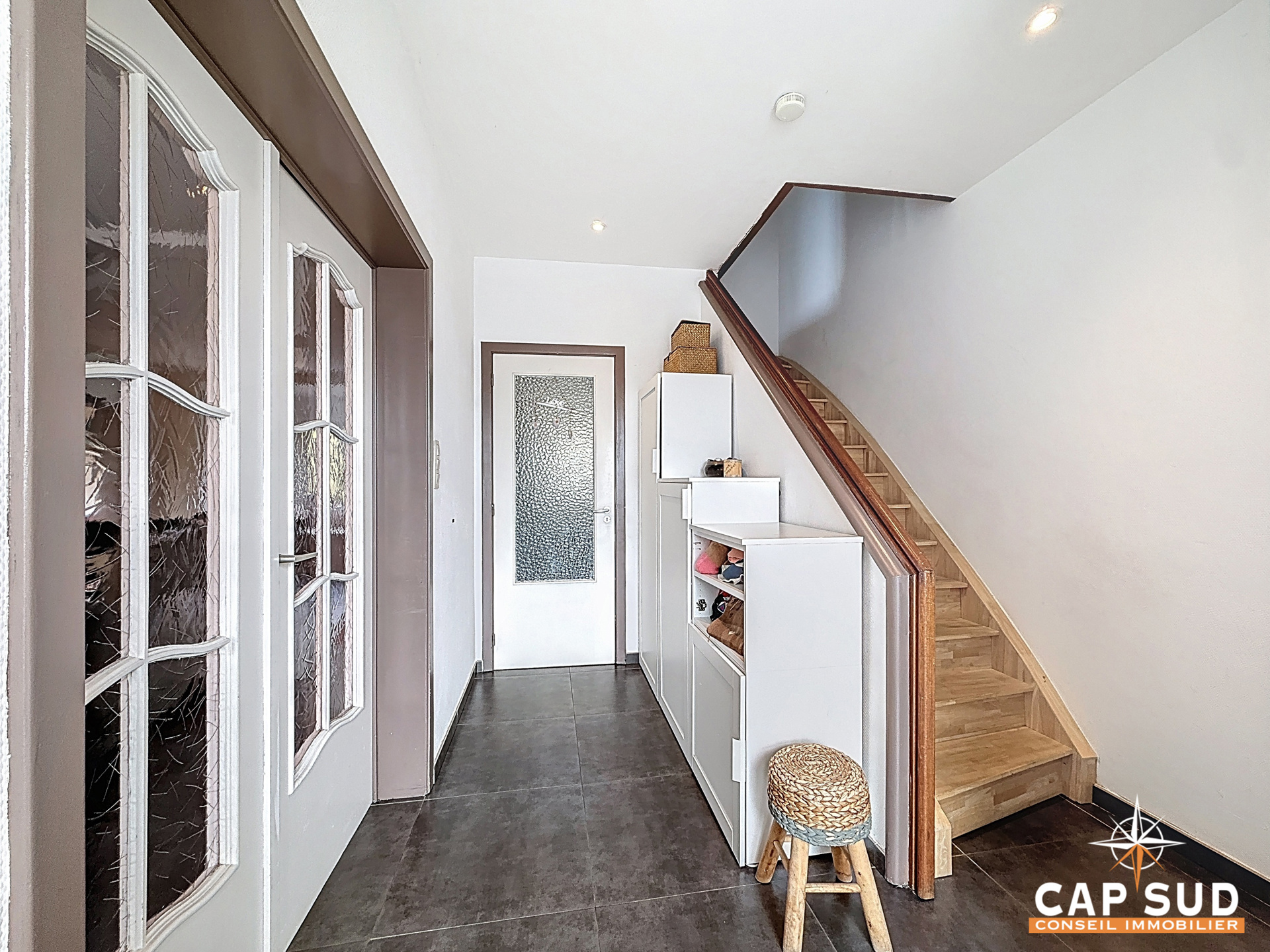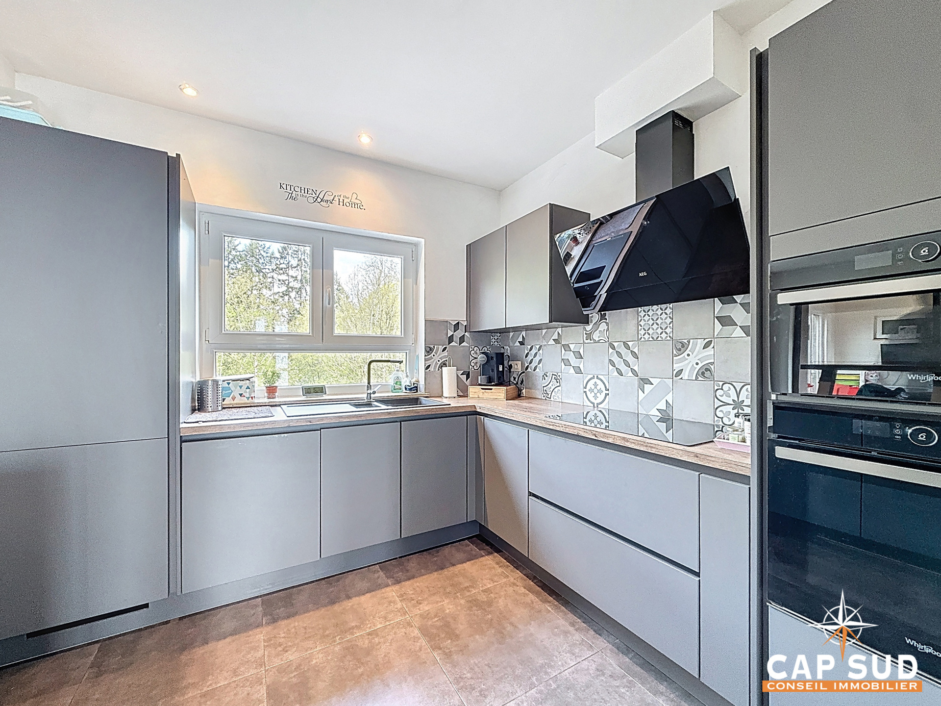 Au sous-sol (entièrement carrelé) : un garage avec porte électrique, caves, une cuisine d’été avec buanderie et une pièce polyvalente (chambre d’amis, bureau etc) avec wc.