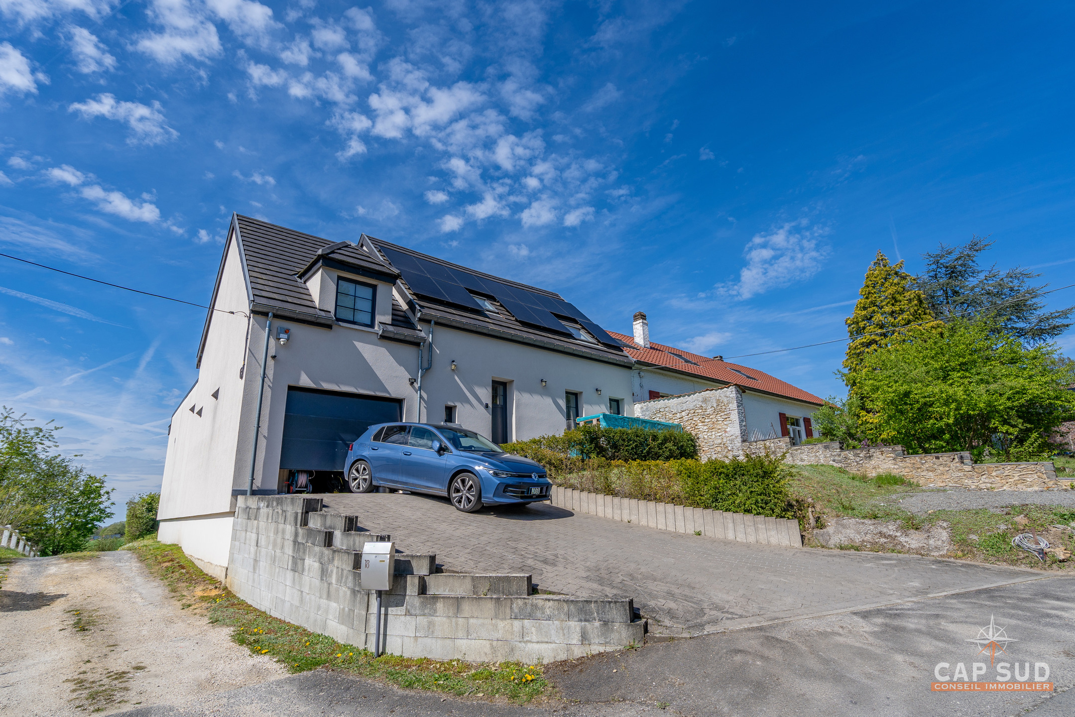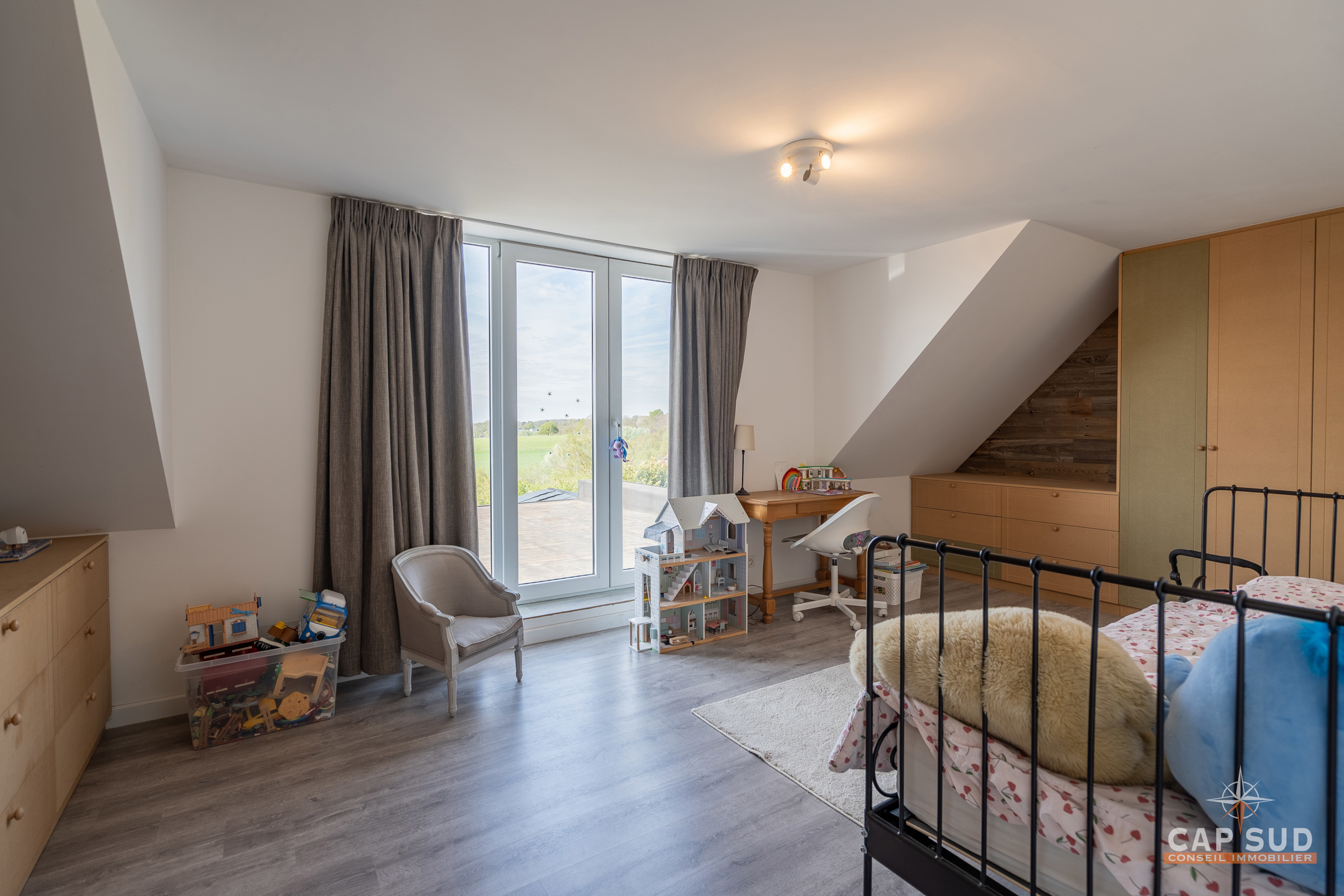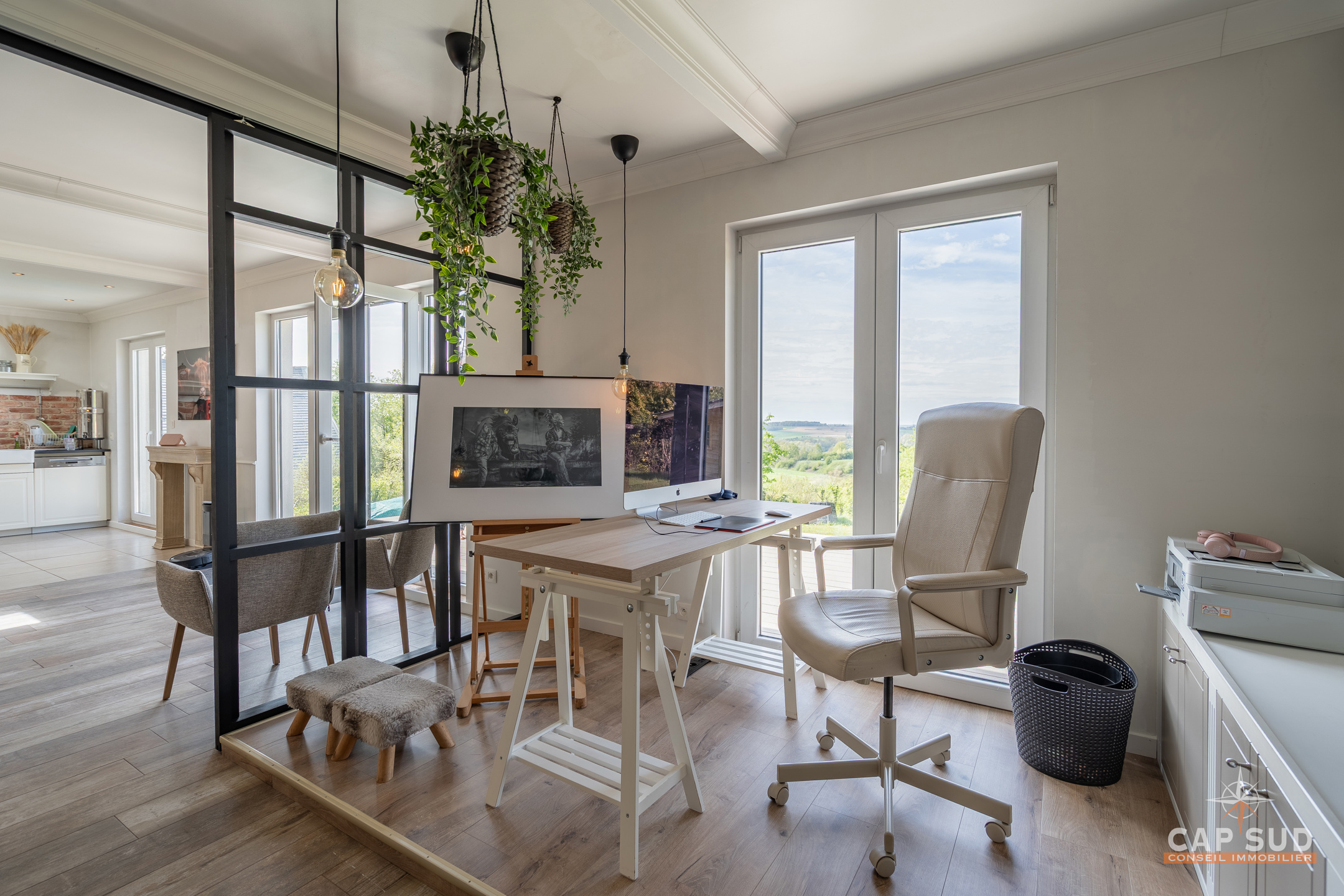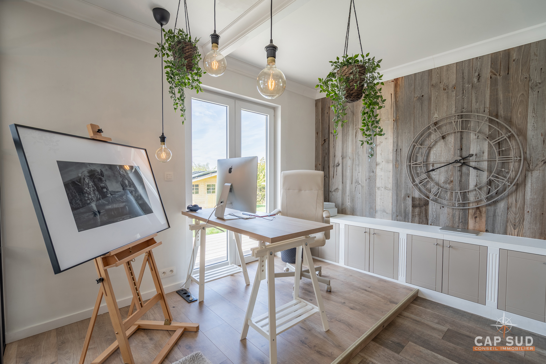 Dès l’entrée, un vaste hall vous accueille et s’ouvre sur un magnifique espace de vie de 80m², baigné de lumière, comprenant un séjour convivial et une cuisine super équipée. L’ensemble donne directement accès à la terrasse et au jardin, idéal pour profiter des beaux jours et des couchers de soleil.