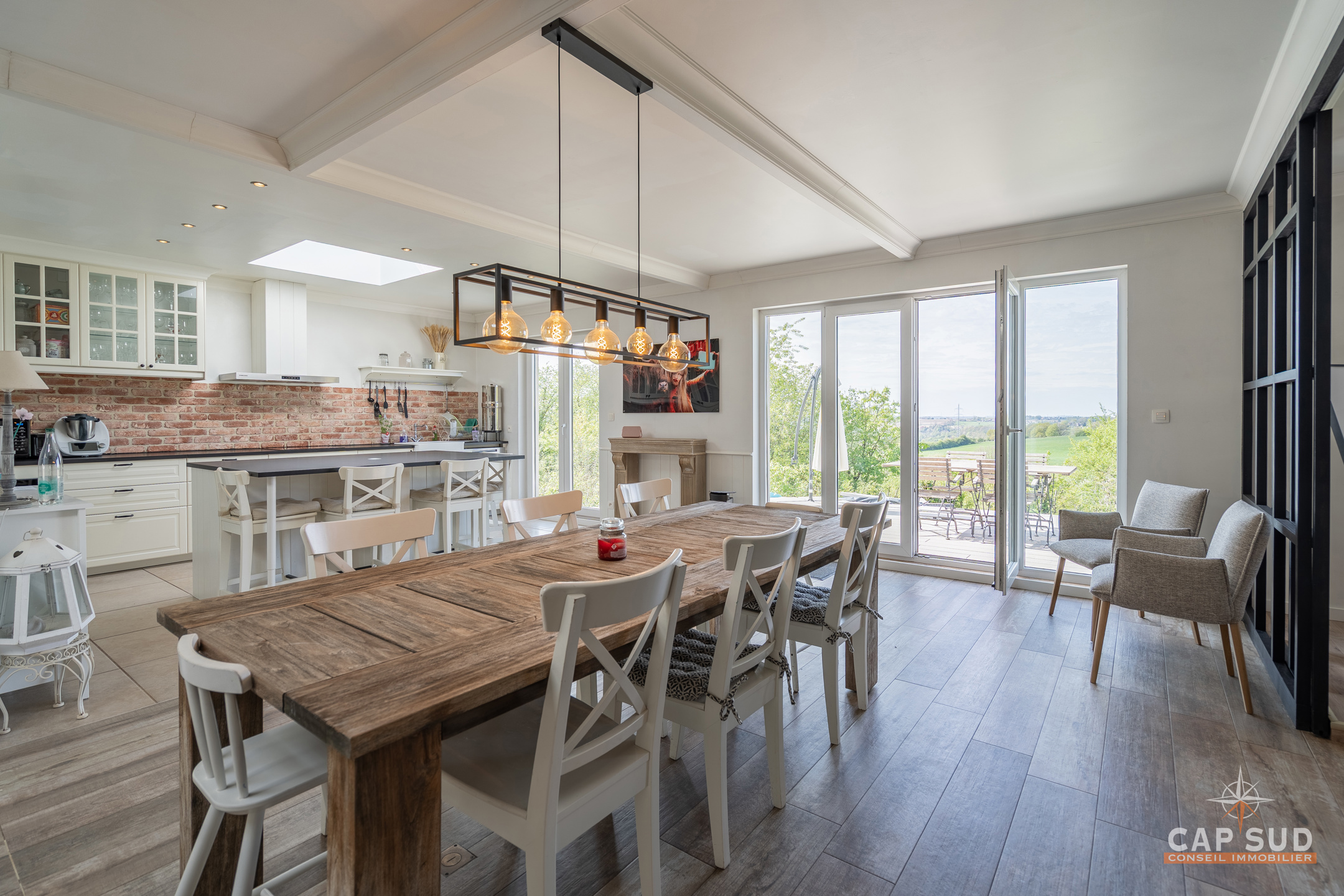 ITTRE – Située sur les hauteurs, dans un environnement calme et verdoyant, cette superbe maison entièrement rénovée de A à Z vous séduira immédiatement par sa vue imprenable sur la campagne et la qualité de ses finitions. Développant ±240 m² habitables sur un terrain de 10,42 ares orienté Ouest, elle offre des espaces généreux, lumineux et parfaitement pensés pour une vie familiale confortable.