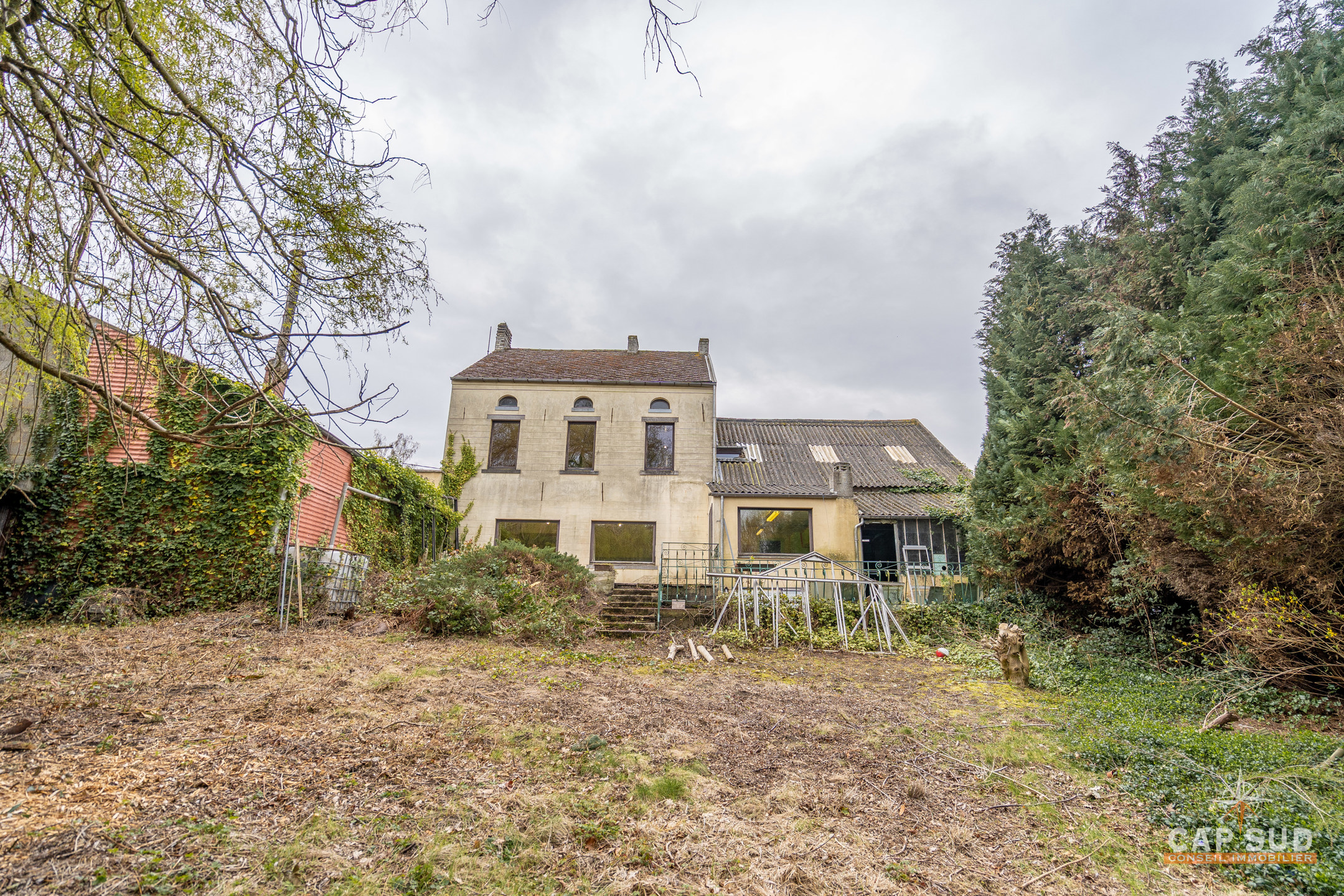 Construction datant +- des années 1900, ce bien est entièrement à rénover, offrant une opportunité rare de créer un projet sur mesure selon vos envies.