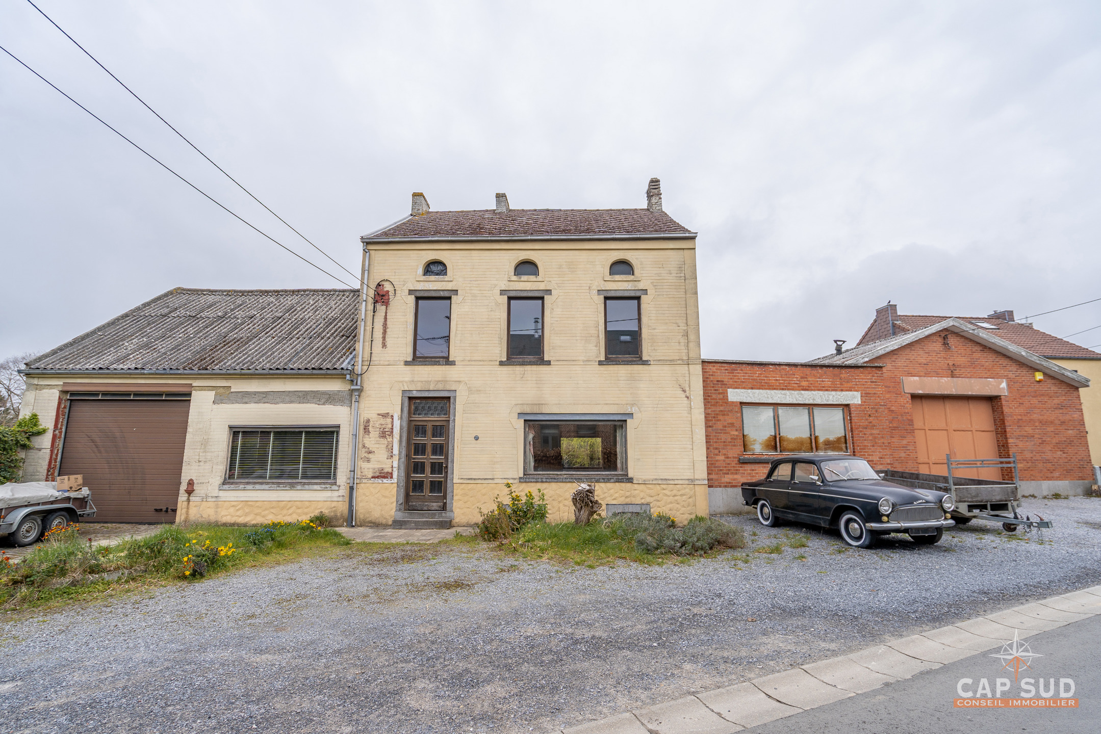 À Sart-Dames-Avelines (1495 Villers-la-Ville) – Cap Sud vous propose cet ensemble immobilier à très fort potentiel, implanté sur un terrain de 14a47ca, idéal pour un projet combinant habitation et activité professionnelle.