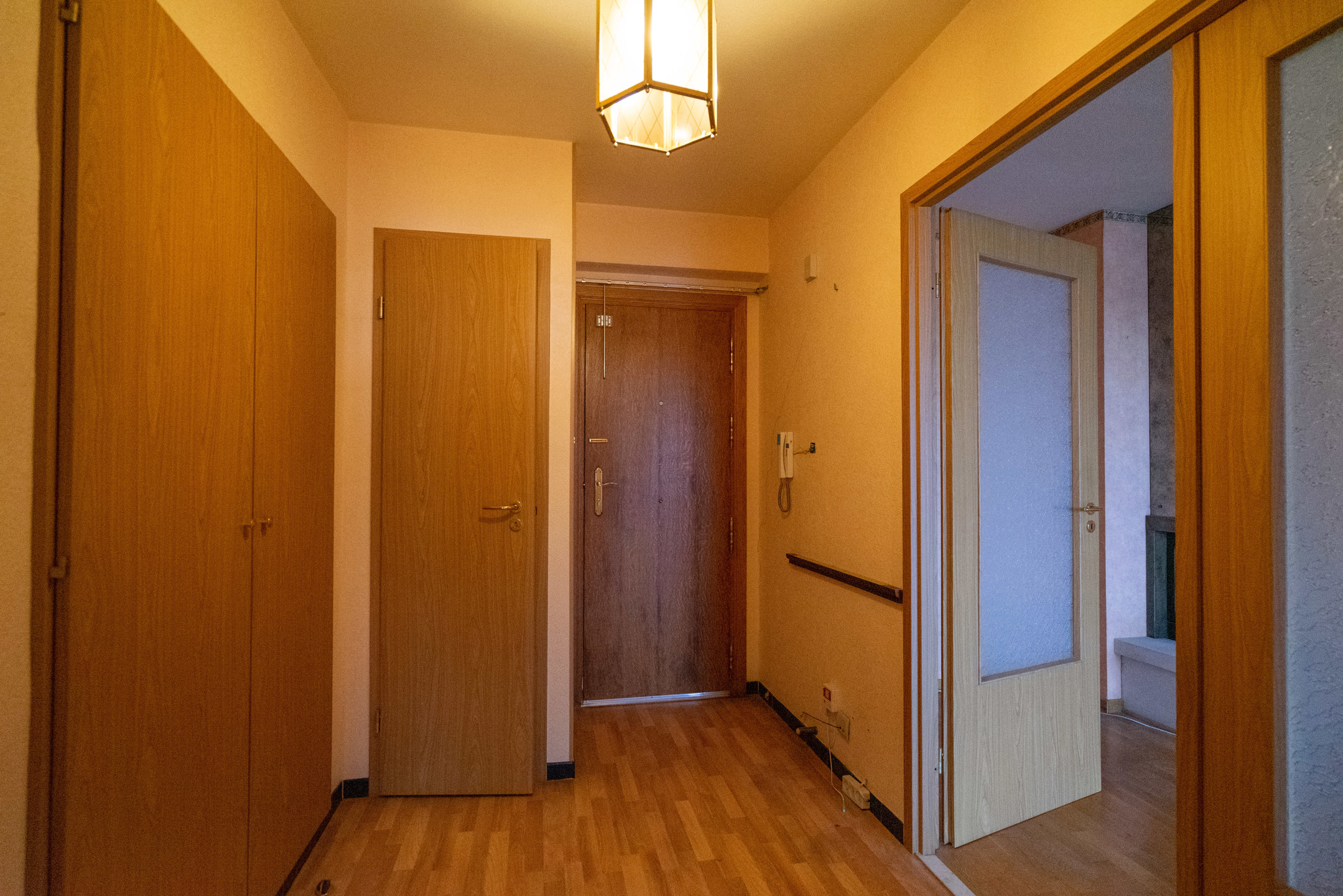 L’appartement dispose d’un spacieux living de ± 26,5m² en parquet donnant accès à une grande terrasse de ± 16m² orientée Ouest. Il se compose de trois chambres en vinyle (±14,5m², ±9,8 m² et ± 9m²), dont la plus grande a un accès à la terrasse, d’une cuisine de 8,5m² (carrelée et équipée d’un four, hotte, double évier et lave-vaisselle), d’une salle de bain de ± 4,2m² avec WC, d’un hall d’entrée avec vestiaire, d’un hall de nuit et d’un WC séparé.