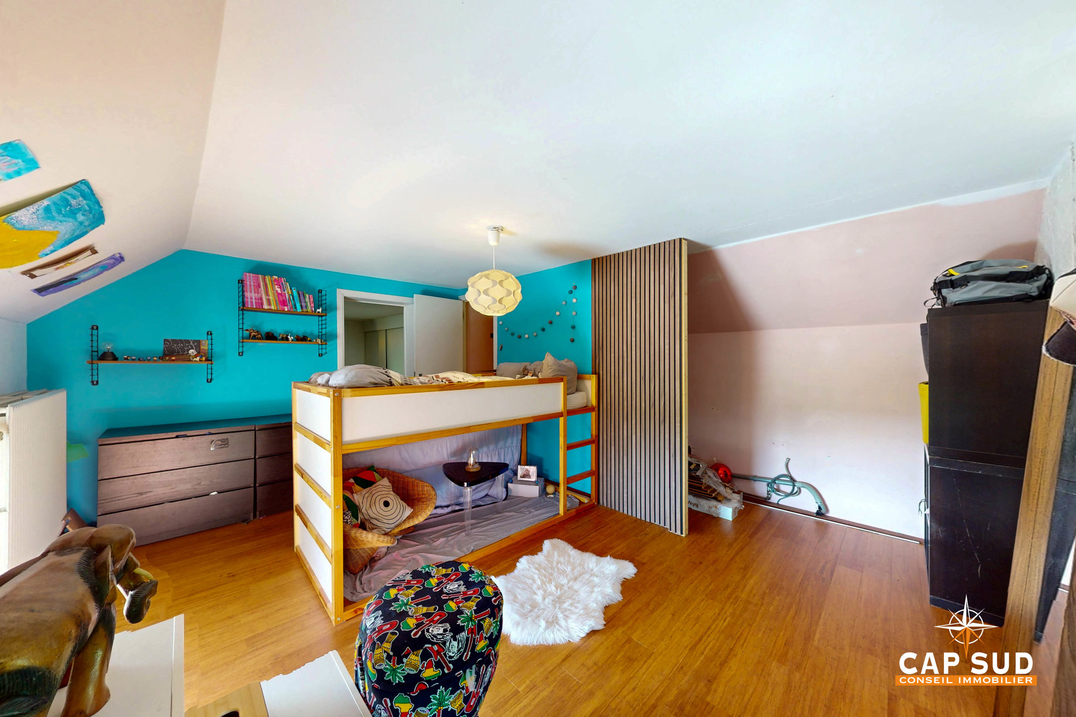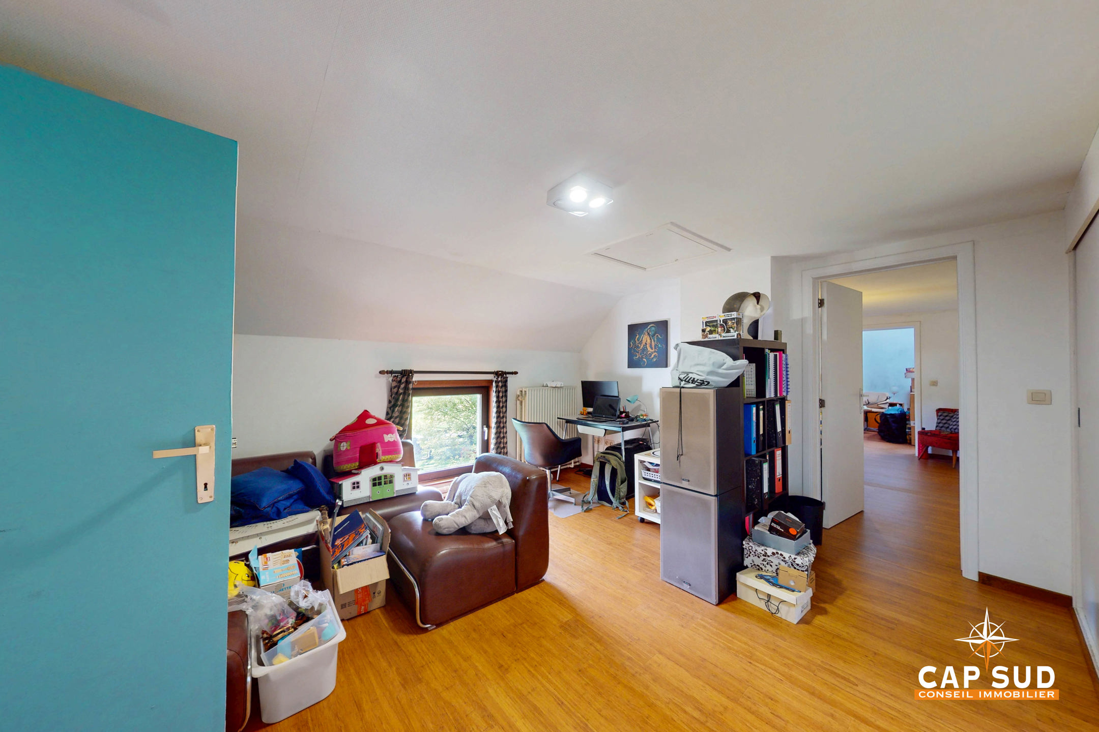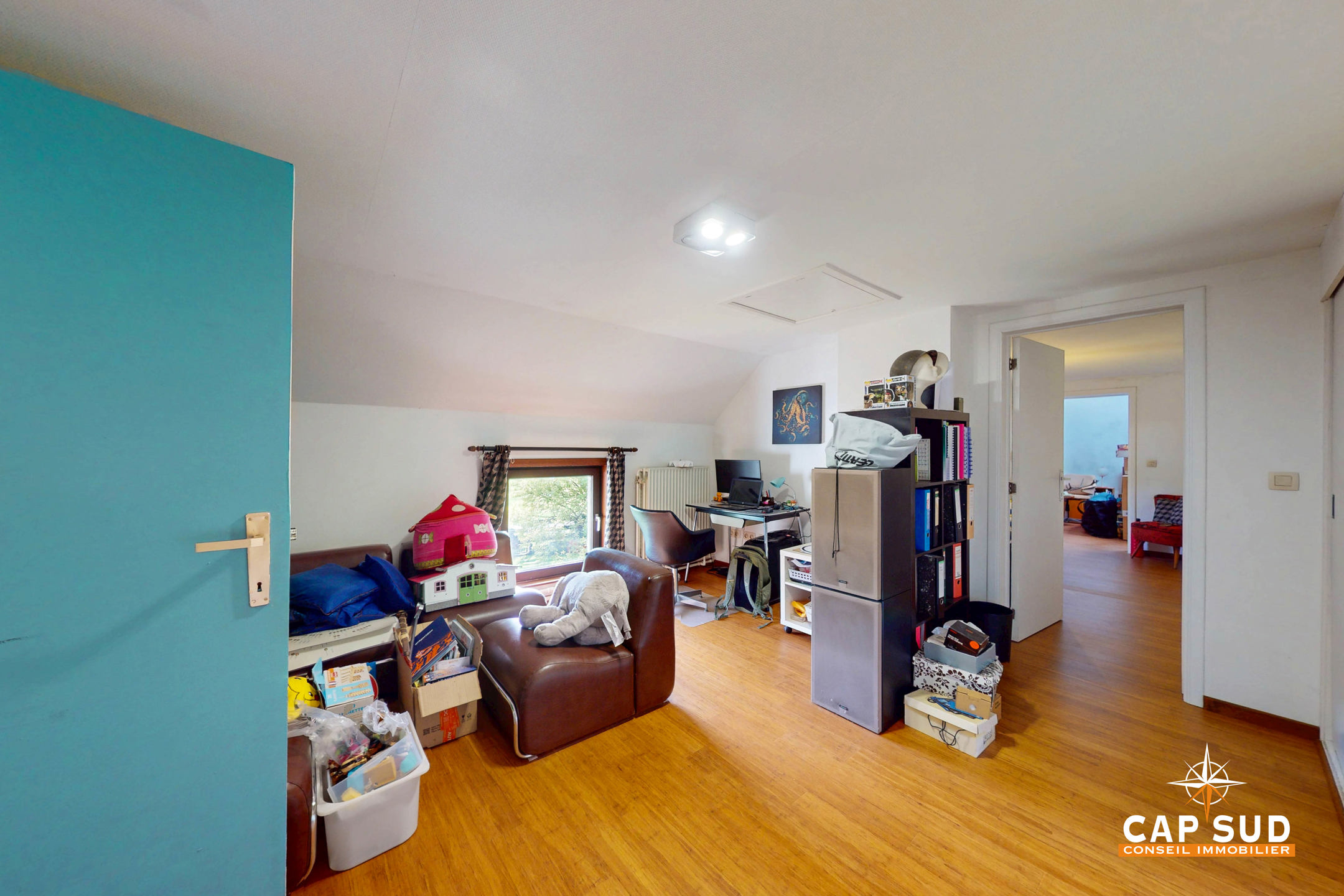 À l’étage, vous trouverez 3 chambres, dont 2 avec placards et 1 avec arrivées d’eau, offrant de belles possibilités d’aménagement.