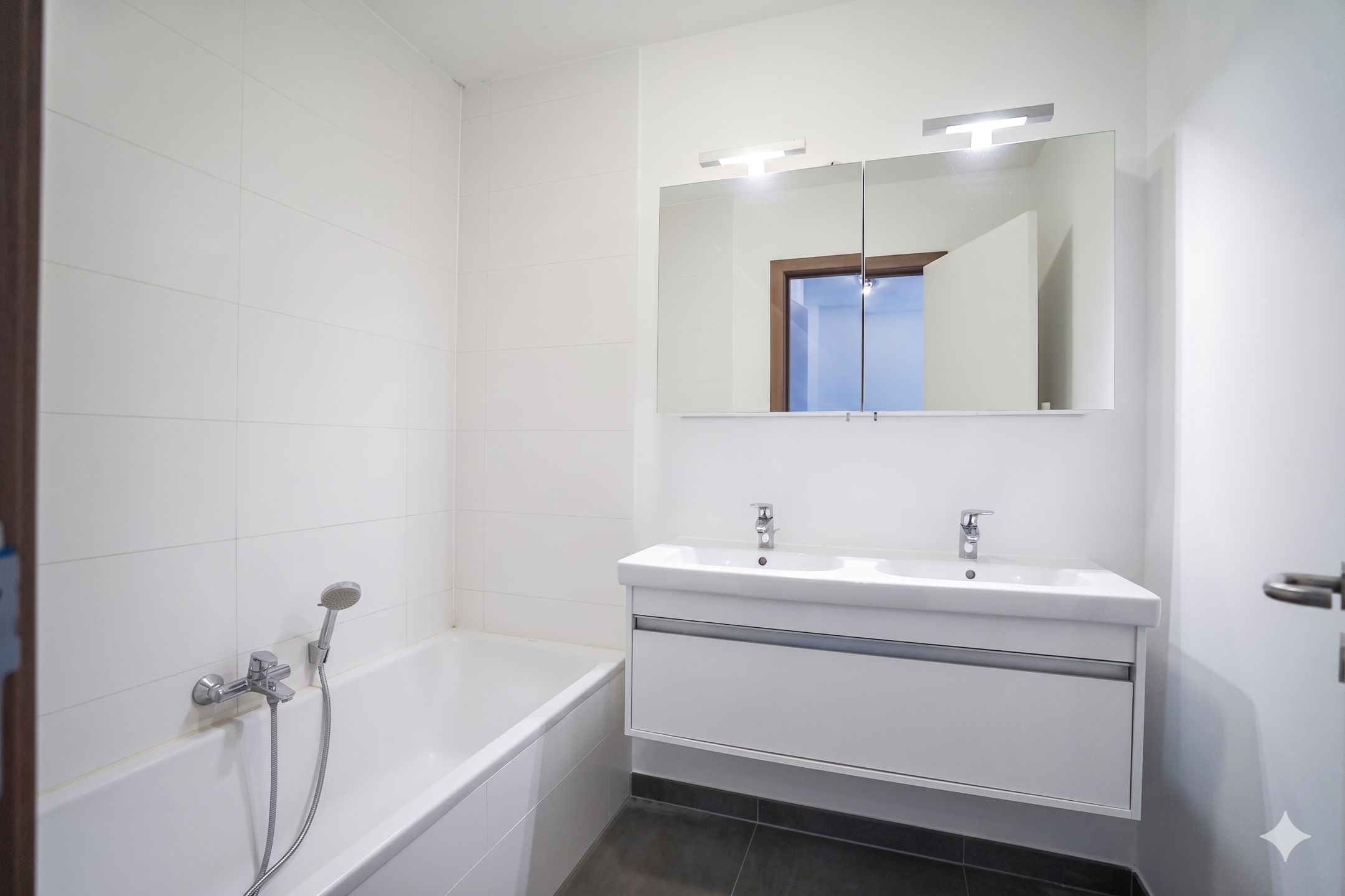 Situé dans un immeuble récent, très bel appartement 2-chambres offrant une superficie de +/-91m² + 2 terrasses (12 et 5,5m²). Il se compose d’un vaste séjour en parquet de +/-35m² avec cuisine américaine super équipée, 2 chambres en parquet de 13,5 et 9m², une salle de bains, WC séparé, buanderie. Provisions pour charges communes : 100€/mois – PEB B+ – 59kWh/m²/an – CO² 11 kg/CO²/an – Certificat n°614244-N-1-11-2-3 – Valable jusqu’au 28/01/2028 : Infos & visites : CAP SUD Etterbeek : 02/733.48.00 – www.cap-sud.com
