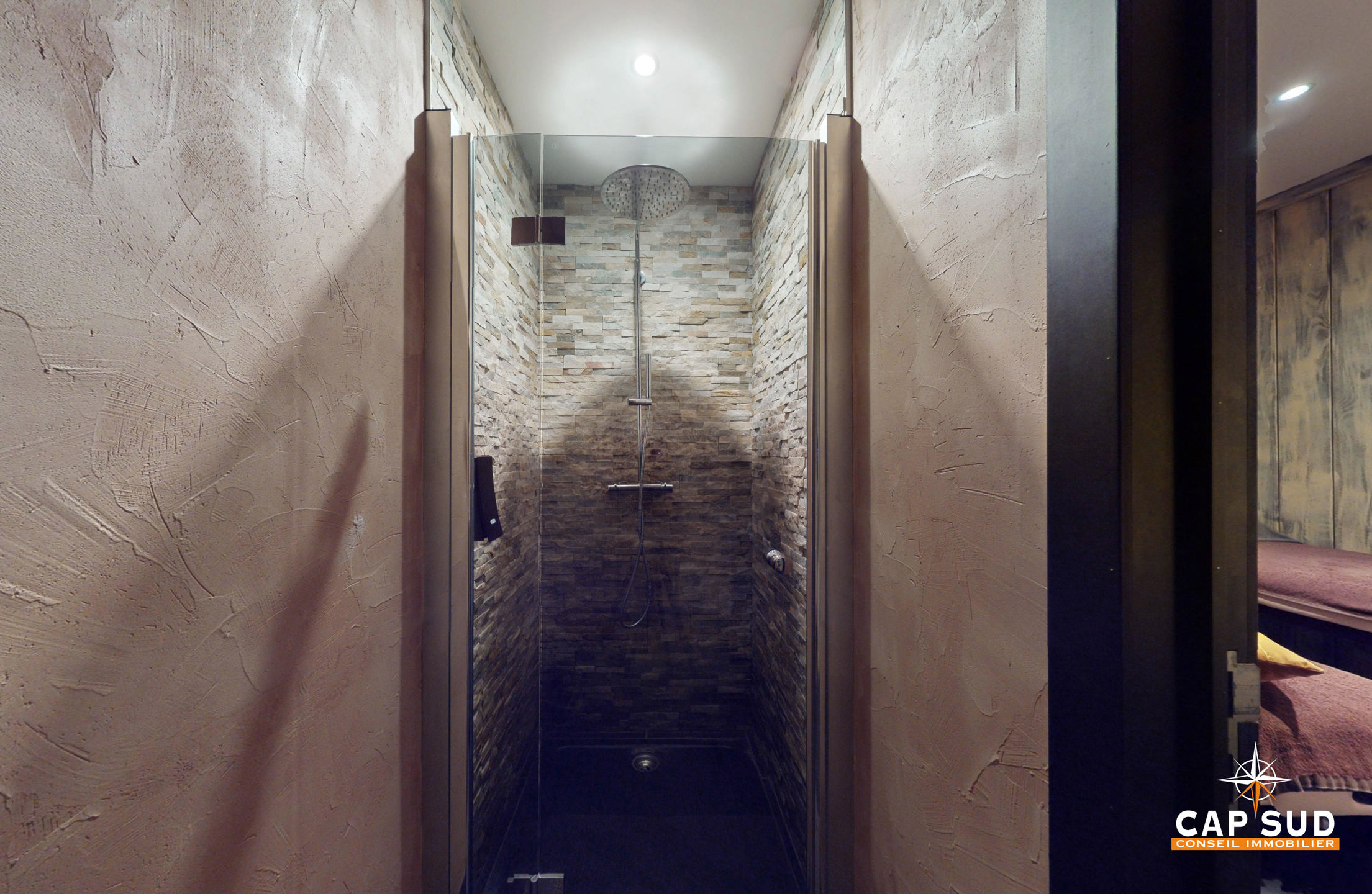 Une salle de massage en duo avec un espace douche,